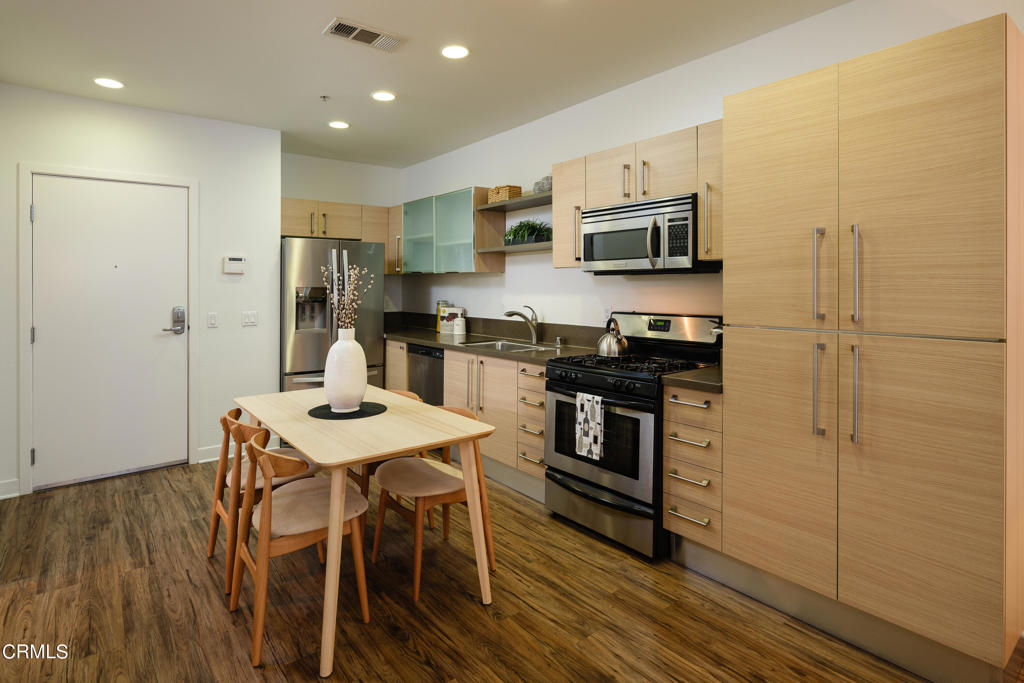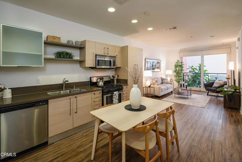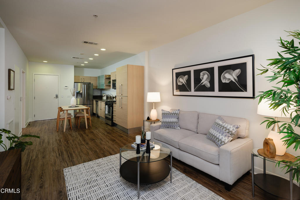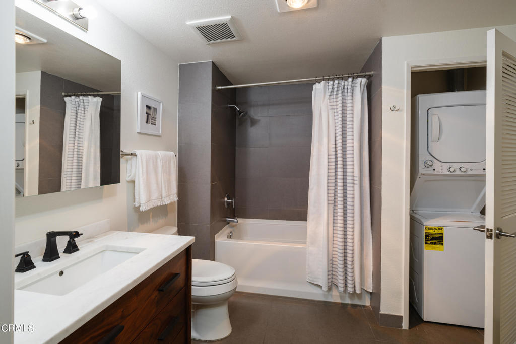 Nestled in the heart of the city, this turnkey condo offers a spacious bedroom, freshly painted interior, a well-appointed bathroom, a new dishwasher, and an inviting open floor plan complemented by a range of desirable amenities. This unit is tucked away giving it a private feel and away from street noise. Past the front door, you'll immediately appreciate the seamless flow of the open floor plan. The kitchen features a sleek quartz countertop, recessed lighting, ample cabinet space, and modern stainless steel appliances that exude style and functionality. The living room is bathed in natural light, courtesy of the sliding glass door that beautifully illuminates the space. The living room has a sliding glass door that opens to a private balcony, a perfect spot for unwinding with a good book on a tranquil afternoon. The generously sized bedroom is a sanctuary of comfort, boasting large windows that flood the room with natural light, creating an airy ambiance. The owner has made thoughtful upgrades, including custom closets in the bedroom and storage area, providing ample space for organization and storage as well as a utility closet! The bathroom is equally impressive, showcasing a new restoration hardware vanity and storage mirror, adding a touch of elegance and functionality. The quartz countertop, tub/shower combo with floor-to-ceiling tiling, and the conveniently included stacked washer/dryer unit enhance the convenience and comfort of this well-designed space. Beyond the captivating features of the condo itself, an array of amenities awaits you. Enjoy the sparkling swimming pool, relax in the soothing jacuzzi, or gather with friends and family at the outdoor BBQ grills. Stay active with the extensive fitness center or unwind and rejuvenate at the sauna. As the evening descends, cozy up by the fire pits. These amenities provide the perfect setting for al fresco dining, relaxation, and socializing. Conveniently located in the heart of Downtown Los Angeles, this condo is surrounded by a wealth of attractions, including renowned restaurants, vibrant shops, world-class museums, the Crypto.com Arena, and the iconic Walt Disney Hall. Immerse yourself in the vibrant lifestyle that Downtown Los Angeles has to offer. Don't miss the opportunity to call this home yours!