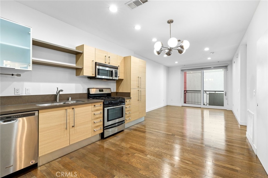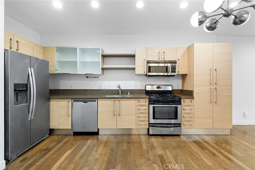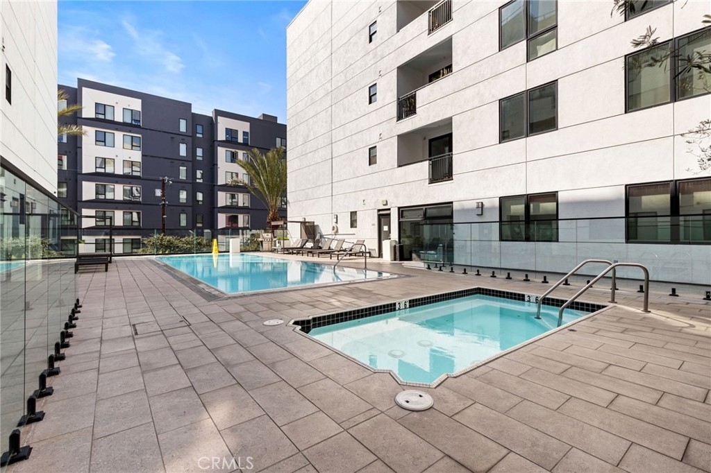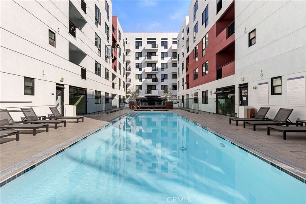 Don’t miss this end-unit opportunity in the prestigious Vero community that offers modern elegance, luxurious amenities and captivating views of the cityscape. Boasting an open-concept floor plan, the unit is flooded with natural light from large windows and features stunning hardwood floors throughout. The thoughtfully designed interior includes a spacious kitchen with European-style cabinetry, sleek stainless-steel appliances, brand new carpet and a generous living area that seamlessly flows into a private balcony, ideal for relaxation or hosting guests. The bedroom is a cozy retreat with a charming vanity area, and a double closet with custom hardwood organizers. The convenience of an in-unit washer and dryer adds to the practicality of this stylish space. This end-unit has no neighbor on one side and also includes two dedicated parking spots. The Vero community provides a resort-style living experience with an impressive array of amenities. Stay active in the state-of-the-art fitness center, relax in the heated pool or spa, unwind in the sauna, or practice yoga in the dedicated studio space. Additional amenities include a library, concierge services, and 24-hour security. Located in the dynamic Westlake neighborhood, this home is just a short distance from shopping, dining, and entertainment options. It’s only minutes from LA Live, Financial District, USC, and major freeways. Don’t miss the opportunity to live in this exquisite, centrally located home—where luxury, convenience, and style come together in the heart of Downtown LA.