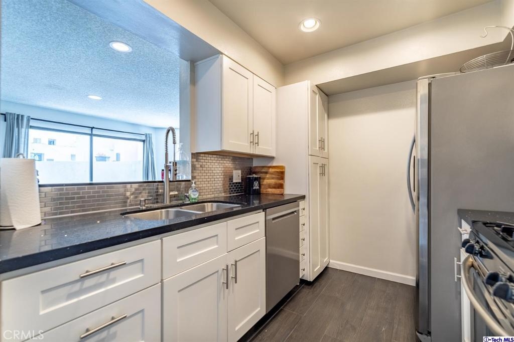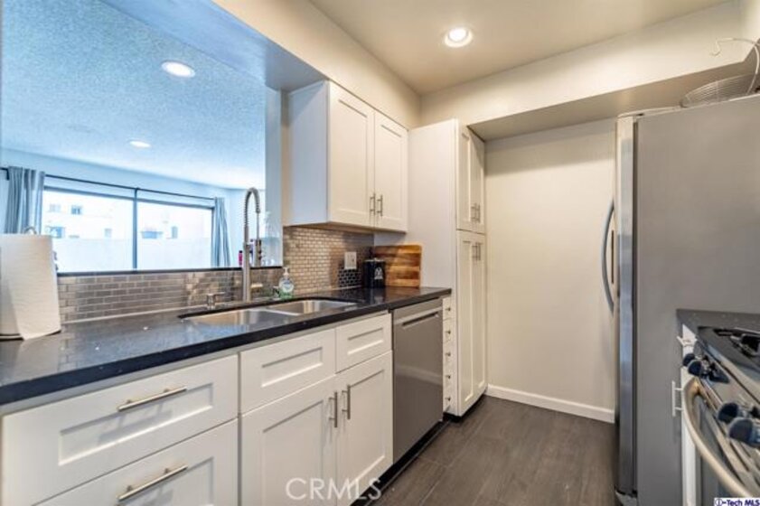 Tastefully remodeled corner unit in the desirable Vista Montoya Condominiums gated complex. The kitchen features quartz counter tops, high quality stainless appliances, shaker style cabinetry and ample cupboard space. Recessed lighting in the kitchen, living room and bathroom along with the laminate flooring throughout provide a uniform and clean look. The second bedroom and living room have access to the outside balcony. Additional features include central air and heat, walk-in closet in the master bedroom and full sized washer and dryer tucked away in a closet. Prime location just minutes from Staples Center, Los Angeles Convention Center, LA Live, cinemas, shops, restaurants with quick access to the 110 freeway.