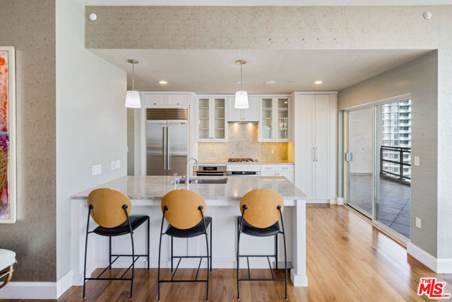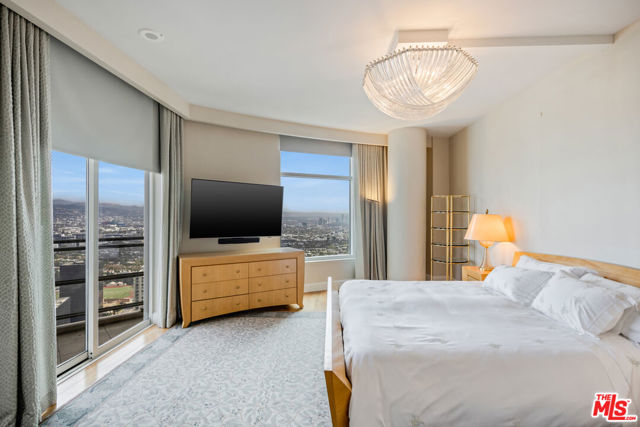 Featuring this stunning 2-bedroom, 3-bath residence at The Century, welcomed by a private double-door entry and showcasing sweeping city-to-mountain vistas through floor-to-ceiling windows. An expansive private terrace seamlessly extends the living spaces outdoors, ideal for entertaining or a quiet retreat. The open-concept design features a sophisticated living room with fireplace, elegant dining area, and a functional kitchen appointed with professional-grade appliances, marble island countertops with an island, and custom cabinetry. A chic powder room is adorned with designer wallpaper, while a bonus space with custom built-ins offers versatility as an office. The primary suite boasts terrace access, a spa-inspired bath with marble finishes, and generous walk-in closets. A spacious laundry room enhances convenience. Renowned architect Robert A.M. Stern designed The Century, one of the West Coast's most prestigious full-service communities, set on 4 acres of landscaped gardens with private pathways, outdoor dining rooms, a wine cellar, screening room, fitness center, resort-style pool with spa and cabanas, valet service, 24-hour guarded gate, and concierge. Minutes from Beverly Hills and the Westside, The Century offers an unmatched lifestyle of elegance and effortless living.