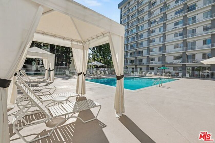 Lovely hi rise building with all the amenities. Redone,1 Bedroom, 2 baths, large kitchen area, private balcony that faces the front of the building, light and bright - unobstructed views of the city ! Enjoy the resort-style pool, tennis courts, fitness center, sauna and secure parking , 24 hour security at the front desk! A great building to live in and it is located next to Four Seasons Hotel and steps away from Beverly Hills. A wonderful place to live!