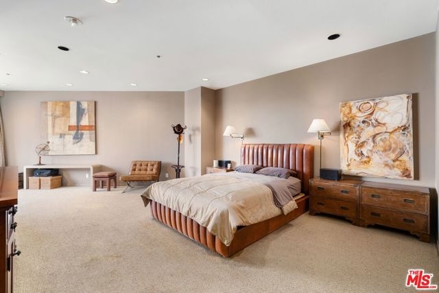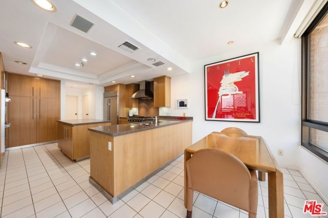 A curated residence, home to a multi-media artist, this expansive corner condominium combines crisp details and contemporary features with a serene, elegant backdrop for collectors of all kinds. Northeast-facing in the prestigious Mirabella and spanning more than 2,800 sq.ft., the home opens with a formal entry before drawing you into sweeping 180-degree views of Little Holmby and the twinkling lights of the Corridor, framed by floor-to-ceiling walls of glass across the expansive great room. The sprawling living area easily accommodates multiple seating arrangements, including a formal living room with fireplace, a generous dining space, room for a den and access to the large corner balcony. The gallery-sized walls with custom lighting provide a natural setting to showcase art. The gourmet kitchen features a center island, topflight appliances, stone counters, and a bright breakfast area, offering both functionality and room to gather. The private quarters include a spacious primary suite with room for a sitting or office area, a walk-in closet, balcony access, and a classic bathroom with separate tub, shower, and water closet. The second bedroom suite includes its own sitting area, en suite bath, and balcony connection. Additional highlights: a powder room and full laundry room. The Mirabella offers premier amenities, including 24-hour concierge, valet parking, pool, spa, fitness center, EV charging, and conference facilities. Recent building updates include the pool, spa, motor court, and front areas. HOA dues of $3,649/month cover extensive services: water, sewer, trash, gas, DirectTV, internet, and earthquake insurance. Perfectly situated just minutes from world-class shopping and dining in Beverly Hills and Century City, and only blocks from Westwood Village and UCLA. For a sophisticated soul seeking a secure place to contemplate, and to house a brilliant collection of art, books, and sculpture, all with the feel of a single-family home within a full-service high-rise. With updates, a new owner can create a one-of-a-kind residence.