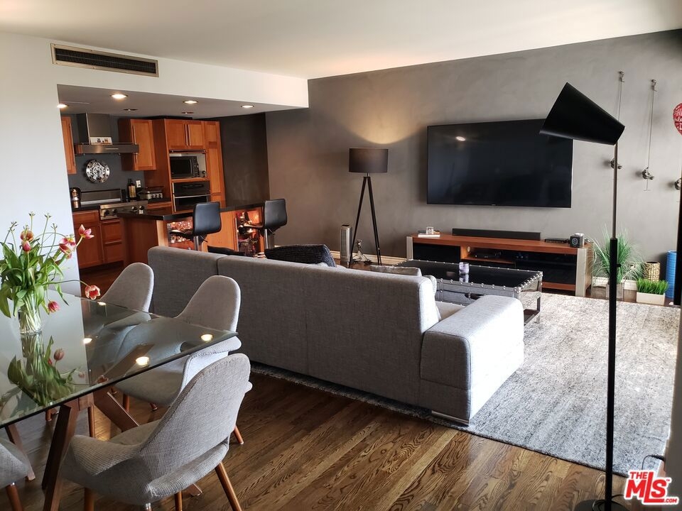 Welcome to the Prestigious Wilshire Corridor, a full-service high rise building with magnificent city and sunset views. This unit was completely renovated with a designer's touch throughout, boasts an open concept floor-plan, features a gourmet entertainer's modern kitchen with top-of-the-line stainless steel appliances, stone counters and breakfast bar. Modern updated baths with a shower and soaking tub and striking attention to detail. Ample closet space throughout, hardwood floors, recessed lighting and washer/dryer in unit. Turfed large balcony for enjoyable summer evenings and spectacular views of the city. Located minutes from Rodeo Drive, includes a 24/7 valet parking, concierge, 24-hour security cameras, onsite full-time management and maintenance staff, social/rec room, fitness center, recently renovated spacious pool deck, jacuzzi, sauna, and individual storage. The HOA dues include all utilities, basic cable & building amenities. LA LIVING AT ITS BEST!