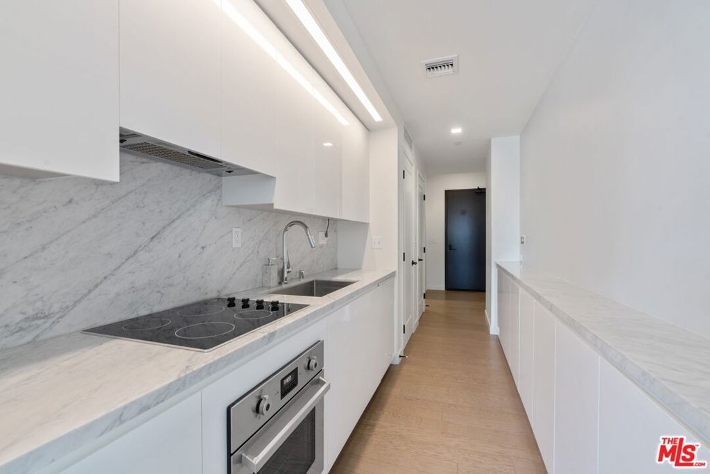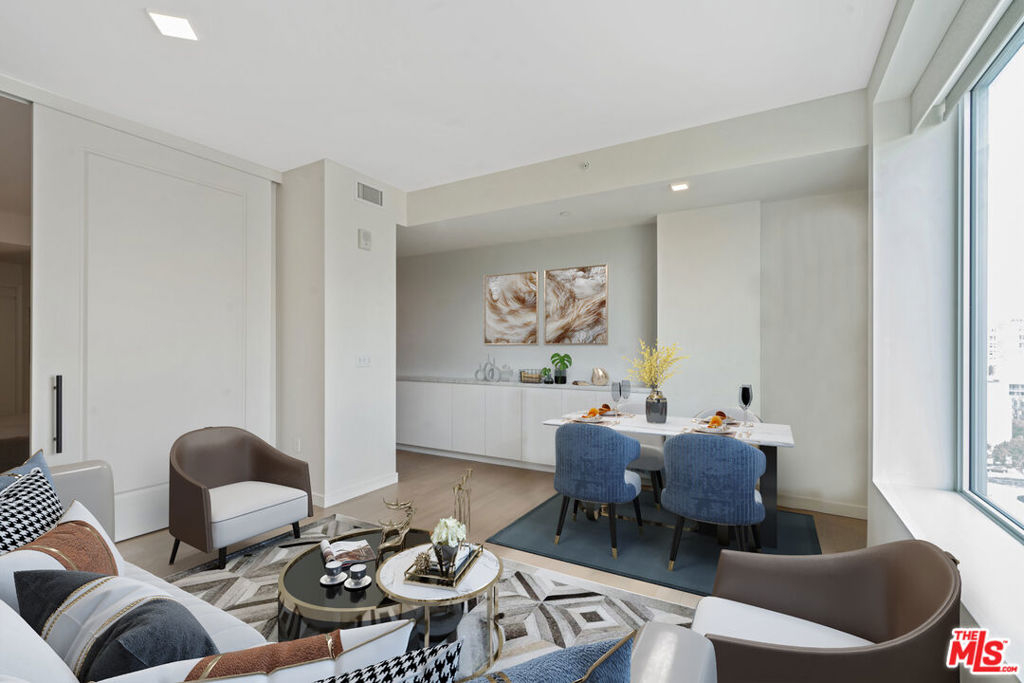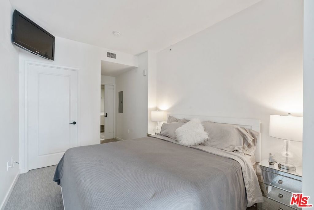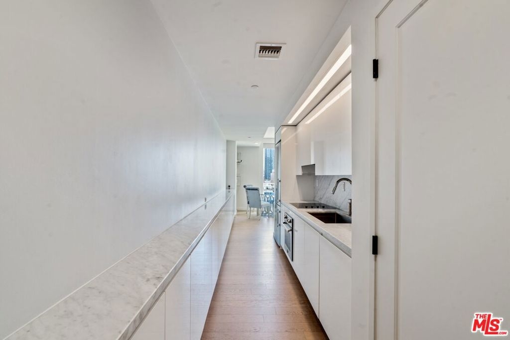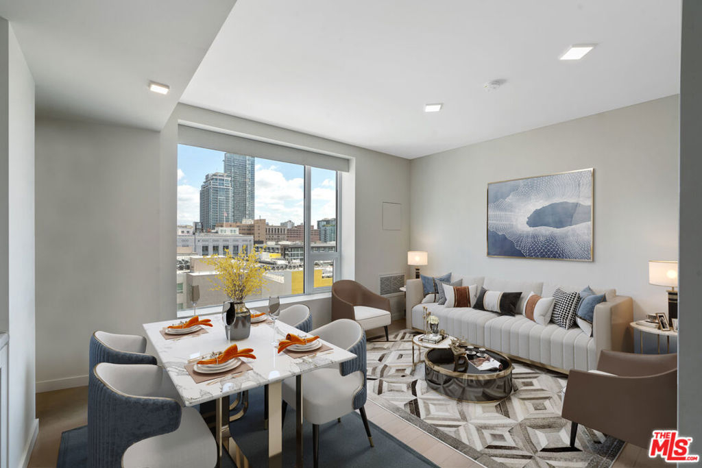 3D Tour: bit.ly/Ten50-1106 Breathtaking Downtown skyline views from this renovated one-bedroom condominium in the sought-after Ten50 building. This ravishing North-facing home offers radiant sunlight throughout the day highlighting the kitchens Carrara marble countertops and backsplash, soft-close Domus and Domus Italian cabinetry, gorgeous stainless-steel appliances, and custom-built wall-to-wall storage with matching marble and cabinet doors. The stunning bathroom features a quartz vanity surface with dual faucets, beautiful porcelain tiles, and one-of-a-kind matching shower bench custom designed by the building developer. From the living room, soak in jaw-dropping views of skyscraping towers or nestle away in the private bedroom with soft lush carpet and a walk-in closet with built out storage. Unique to this home is a HIGHLY DESIRABLE ONSITE DEEDED STORAGE CAGE, an envious parking spot, and nearly $40K in upgrades! Ten50 offers resort style amenities including an infinity-edge pool, spa, fire pits, barbecue grills, fitness center, community lounge, dining room, business center, media screening room, 24-hour security and concierge, and guest parking! Only a short distance from LA Live, Staples Center, Metro lines, and widely popular Downtown destinations.