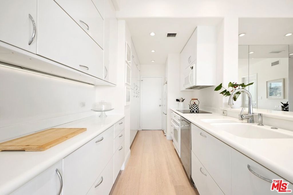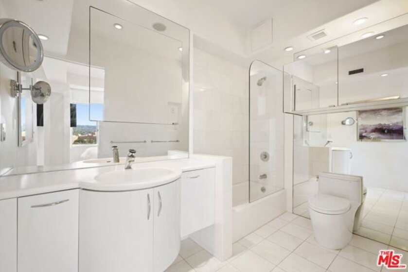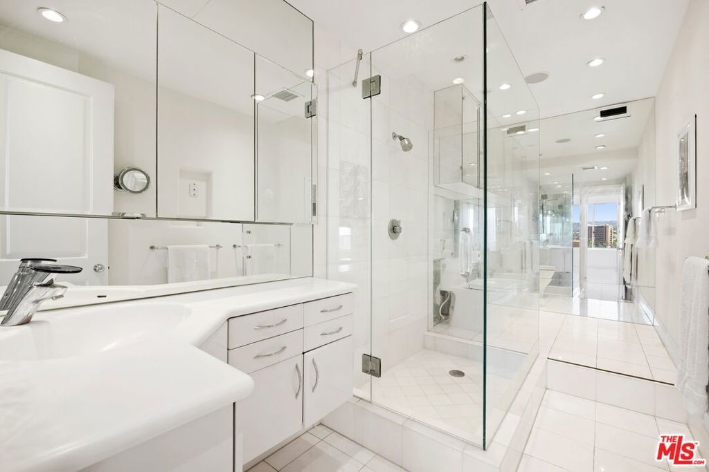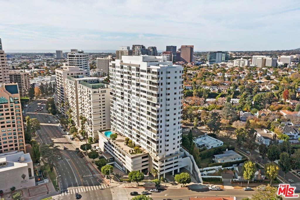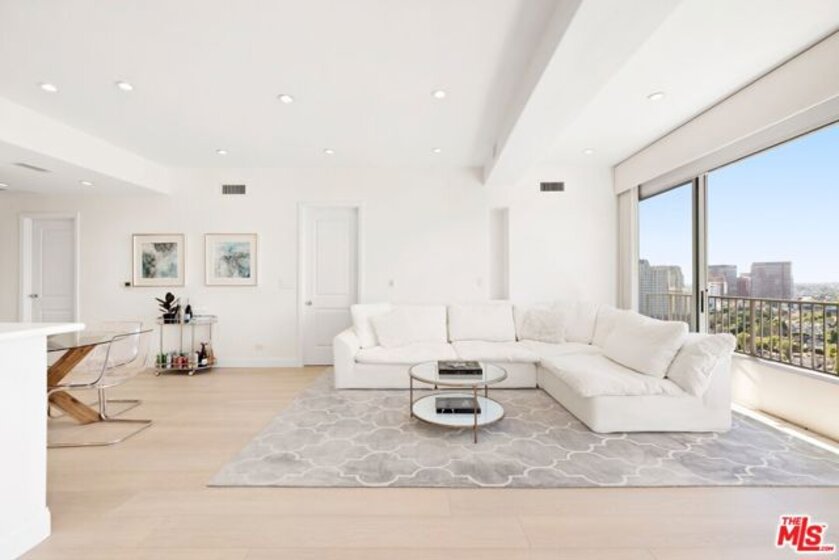 VIEWS, VIEWS, VIEWS. Head-on southwest facing and perched on the 22nd floor, this sun-drenched, ultra-glamorous residence captures magnificent canyon and skyline views with sweeping exposures to the north, west, and east. Located along the prestigious Wilshire Corridor, this impeccably reimagined condo offers soaring ceilings, refined recessed lighting, and rich hardwood floors, creating an atmosphere of timeless sophistication throughout. This pristine 2-bedroom, 2-bath home features an expansive primary suite with a generous den or office, exceptional storage, and abundant closet space rarely found in condominium living. The chef's kitchen is both striking and functional, showcasing floor-to-ceiling Italian cabinetry, sleek Corian countertops, and elegant white marble flooring. Fleetwood windows and sliding glass doors frame the breathtaking vistas while flooding the home with natural light. The spa-like primary bath features a soaking tub and separate shower, while the oversized secondary bath impresses with a large walk-in shower, marble floors, and bidet. Additional highlights include massive storage throughout, two-car parking with the option of self-parking or white-glove valet service, and residence within The Wilshire Regent, one of the Corridor's most coveted full-service buildings, renowned for its unparalleled amenities, white-glove staff, and prime location. Every detail reflects elevated luxury, effortless comfort, and a truly refined lifestyle.