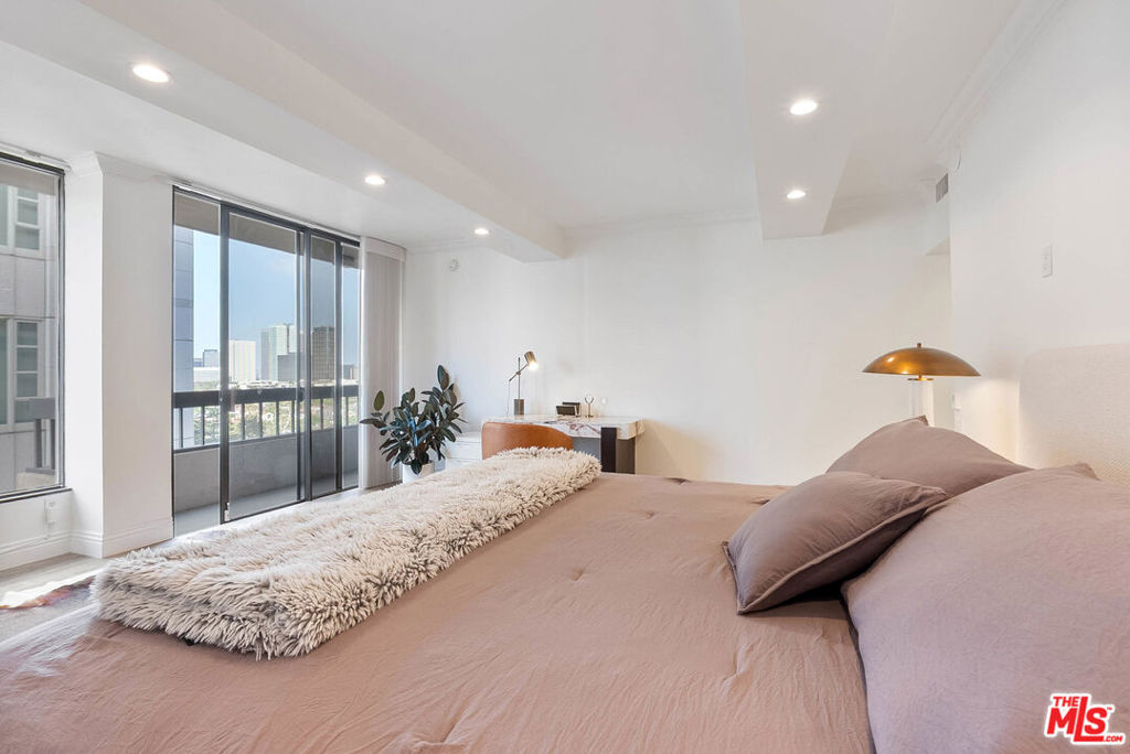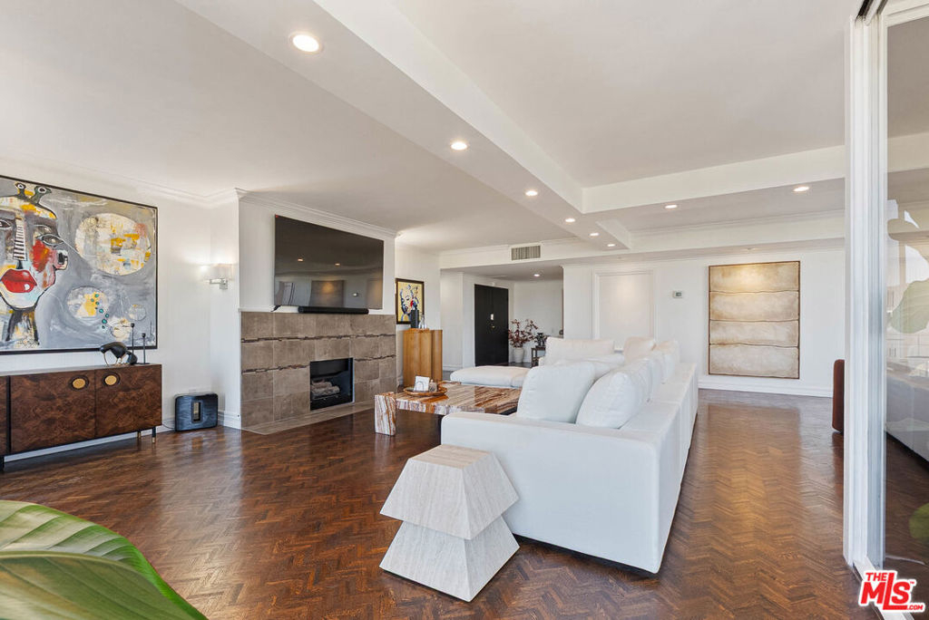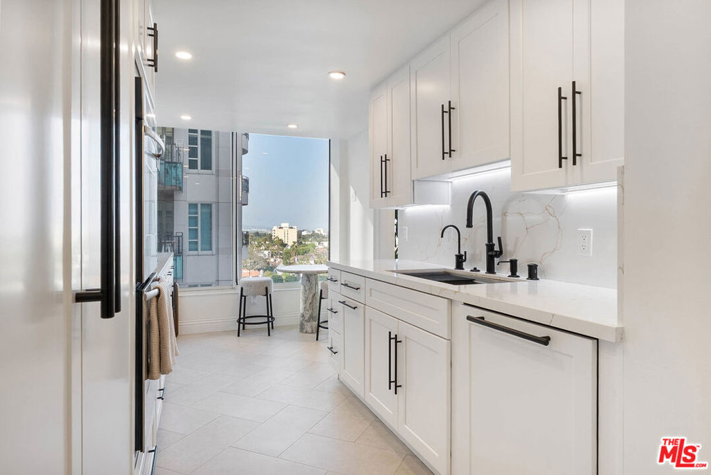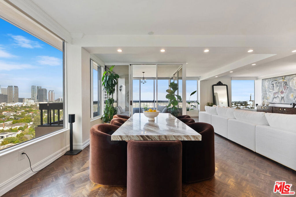 Modern Warmth. Iconic Views. Timeless Design. Welcome to Residence 1502 at The Westholme, a reimagined corner unit offering over 2,300 square feet of elevated living on LA's legendary Wilshire Corridor. This 2-bedroom, 2.5-bath residence blends scale, light, and style with sweeping views from Century City to the Pacific. The home has been thoughtfully updated, including a striking kitchen with custom paneled appliances, veined quartz countertops, matte black fixtures, and a sleek eat-in breakfast nook wrapped in glass. The dining and living rooms open to an enclosed balcony lounge, ideal for morning coffee and sunset views, with sliding doors and windows that invite in natural light and fresh air year-round. The floor plan balances function and flow: a spacious living area with herringbone wood floors and a limestone fireplace; a generous guest suite with an ensuite bath; and a serene primary retreat with newly finished flooring, dual vanities, and a tailored walk-in closet. Residents of The Westholme enjoy 24-hour valet and concierge, a rooftop lounge with BBQs and panoramic views, a pool, and a spa, all just minutes from Beverly Hills, UCLA, and Westwood Village.
