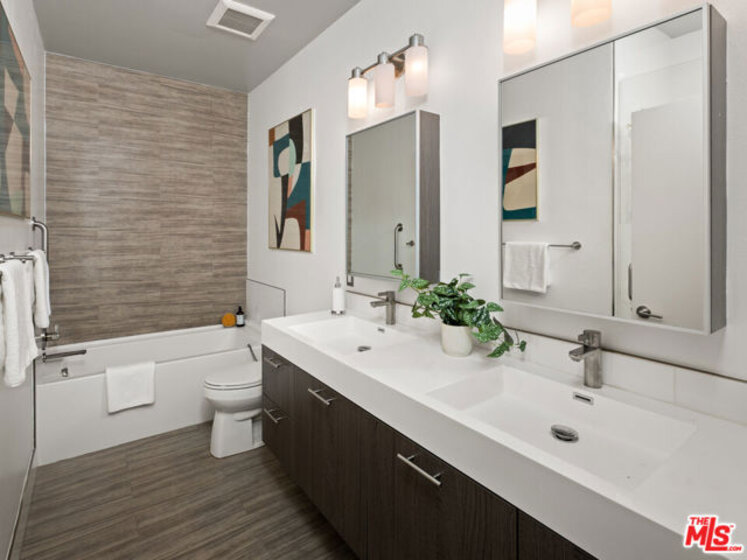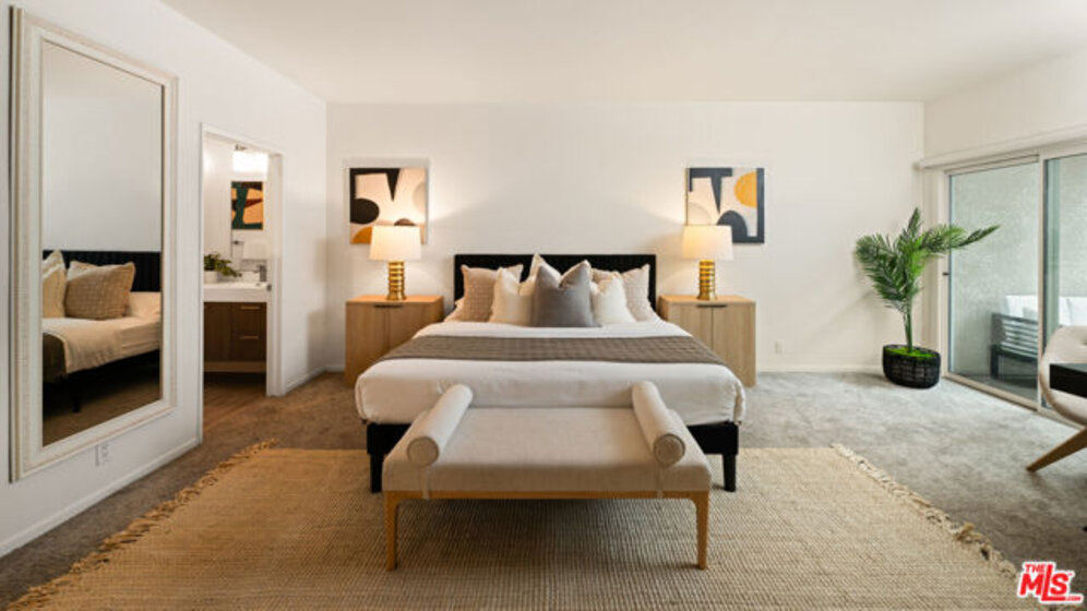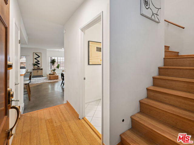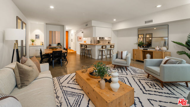 Fabulous remodeled townhome in an exceptional Westwood location! Be wowed...Reminiscent of a New York Loft! Step into a gorgeous great room with high ceilings, Honed Concrete floors, large living room, balcony & spacious dining area with a coffee/ wet bar. The kitchen is open to the living/dining with stainless steel appliances, a breakfast bar & pantry. Separate laundry room has washer, dryer & lots more storage. There is a formal entry w/powder room & coat closet. Huge second story with expansive prime suite, walk-in closet, remodeled full bath with separate shower and another balcony. Second bedroom has a double sliding closet and its own remodeled full bath in the hall. Security building with elevator and 2 car tandem parking. Ashton is the first block south of the Wilshire Corridor, fabulous residential neighborhood, best schools & a great place to call home. Easy commute to UCLA & Westwood Village, Century City, Beverly Hills & entire Westside! Security building, elevator, easy to show!