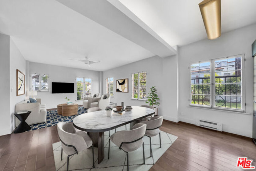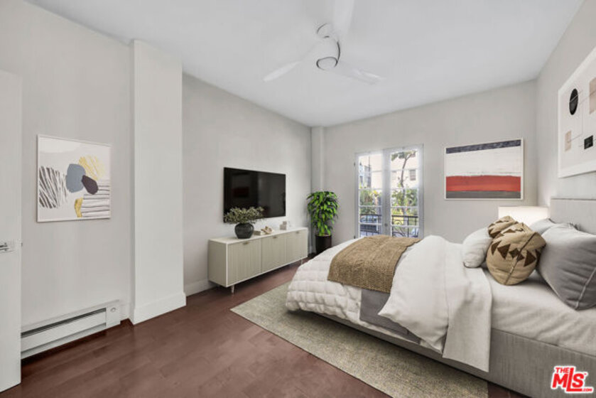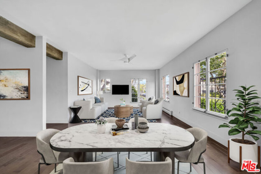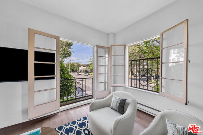Welcome home to The Warwick and this wonderful 1928 Historic Building in prime Hancock Park. Third Street Elementary School. The condo is around the corner from Sycamore Kitchen and Sugarfish, and an abundance of restaurants & shops. Custom German-designed kitchen by Poggenpohl, with push/pull hardware throughout. Gorgeous Caesarstone countertops with a Miele oven and Miele dishwasher & under-cabinet recessed lighting. Minka fans in both the living and primary bedroom. This is an amazing open space reminiscent of a NYC loft. Floral Juliet balconies and French door windows, high ceilings, and custom-made Aero bottom-up shades throughout. Poggenpohl hallway cabinets and a wall-to-wall mirrored bathroom, and vertical subway tile shower, and a lovely pedestal sink. The Primary bedroom has a hardwired entertainment system (in the living room as well) and a customized walk-in closet with dresser shelving, a hanging system. The building has a newly remodeled gym/fitness center with all the necessities and community bike racks. There is a beautiful courtyard for relaxing, subterranean parking included, and visitor parking too. Don't miss this one.