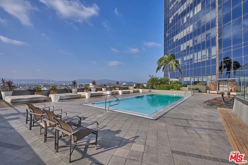 2 story Loft style condo w/ open floor plan, high ceilings, and a private balcony. The Master bedroom overlooks a spacious downstairs entertaining area that leads to a private balcony (330SQ.FT) w/ great panoramic views of the downtown skyline. Featuring GE Profile Stainless Steel kitchen appliances, European style cabinetry, granite counters, separate shower & tub in the master bathroom, custom-designed walk-in closet. The sky deck is located on the same floor w/ pool, spa, BBQ area, fire pit, cabanas. Fitness, Private screen room, business center, controlled access by 24 hr security. No need to change elevators from the parking garage. 1 reserved parking and 1additional parking is available. Close to 7th/Flower Metro Station, Ralph's, FIDM, Macy's Plaza,