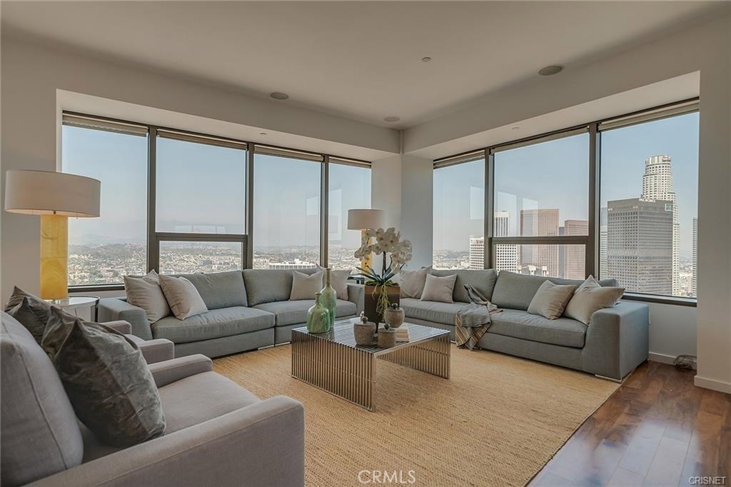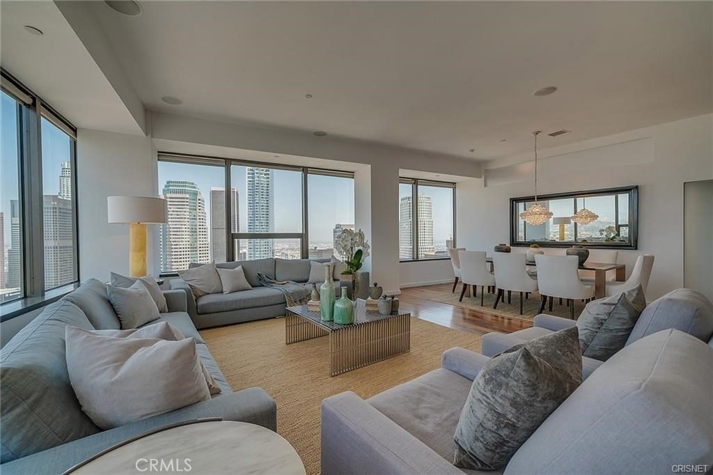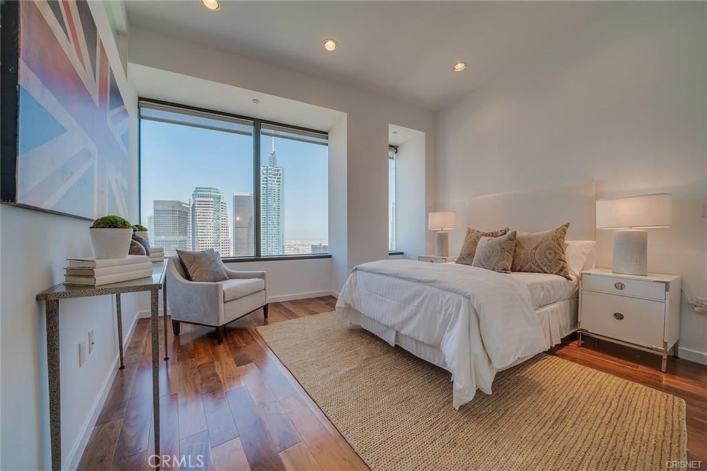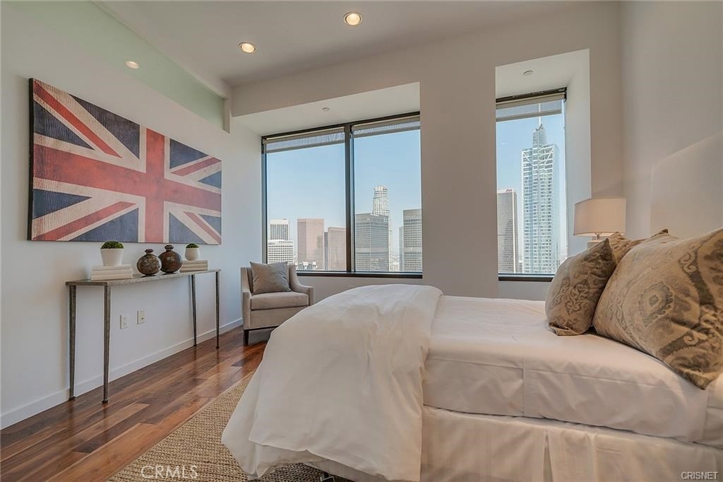Exquisitely modern 2BD/2BA condominium located in a desirable neighborhood! This unit offers privacy with panoramic views of the city with an impressive 1,870 sq. ft. of upgraded space and comes with 3 deeded side by side parking space on the lower level and 1 deeded storage. As you step in, gorgeous hardwood flooring and high ceilings truly brighten up this already spacious room, while maintaining that cozy chic vibe with recessed lighting and ample amounts of large windows. Open kitchen features all modern designs with European cabinetry, stainless steel appliances, and an island for extra storage and sitting space. This floor plan flows nicely from room to room, providing a great space for entertaining your guests any time of the day. Luxurious master bedroom has great views of the city to start and end your day in, with a sitting area you could enjoy while you sip your cup of coffee. A large walk through closet is complete with built in shelves and a vanity space for your convenience. Master bathroom is your own spa with marble double sinks, a frameless stand-in shower, and a spacious soak-in tub. Second bedroom also features a large walk-in with built-in shelving. Guest bathroom features a steam shower. The complex is impressive in itself, featuring 24hr front desk security, fitness center, swimming pool with deck, a media room, and many more! Located nearby LA Live this condominium is an entertainer's dream to fully enjoy the amazing city life that DTLA has to offer!
