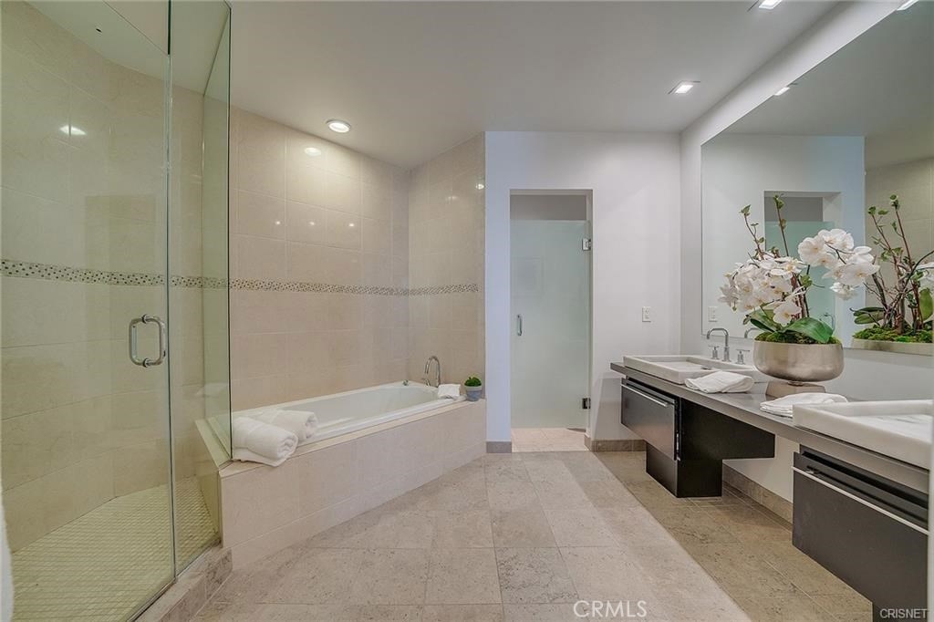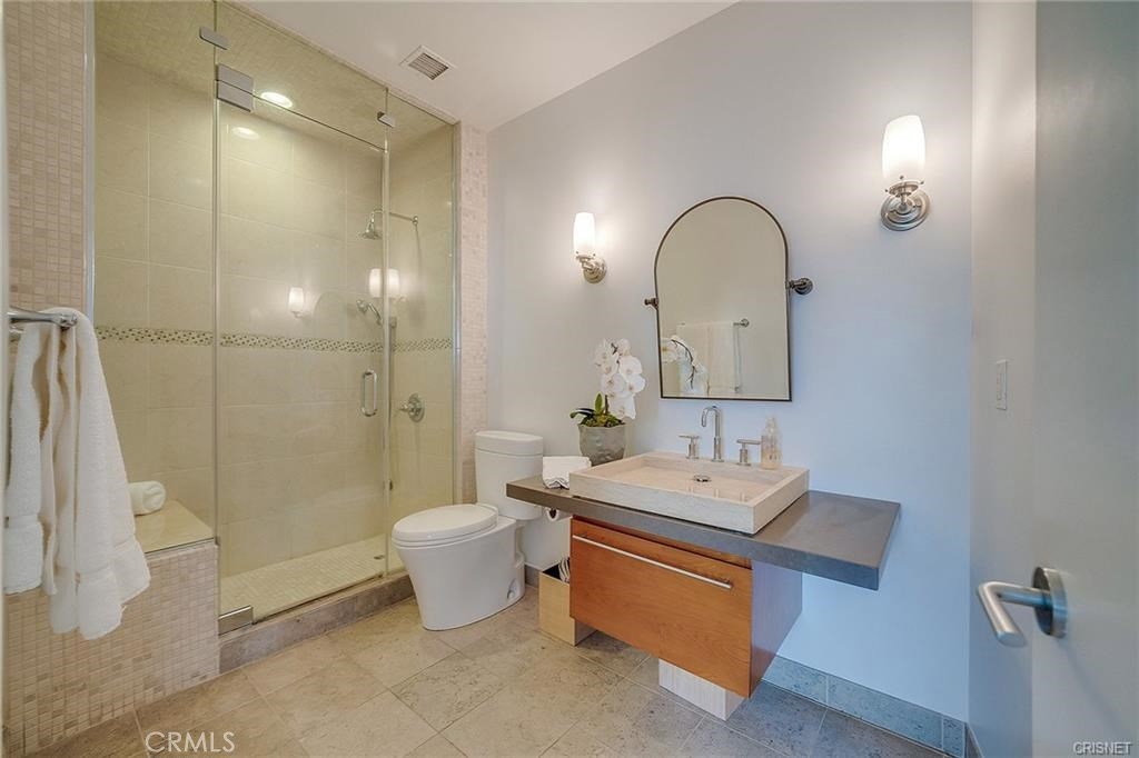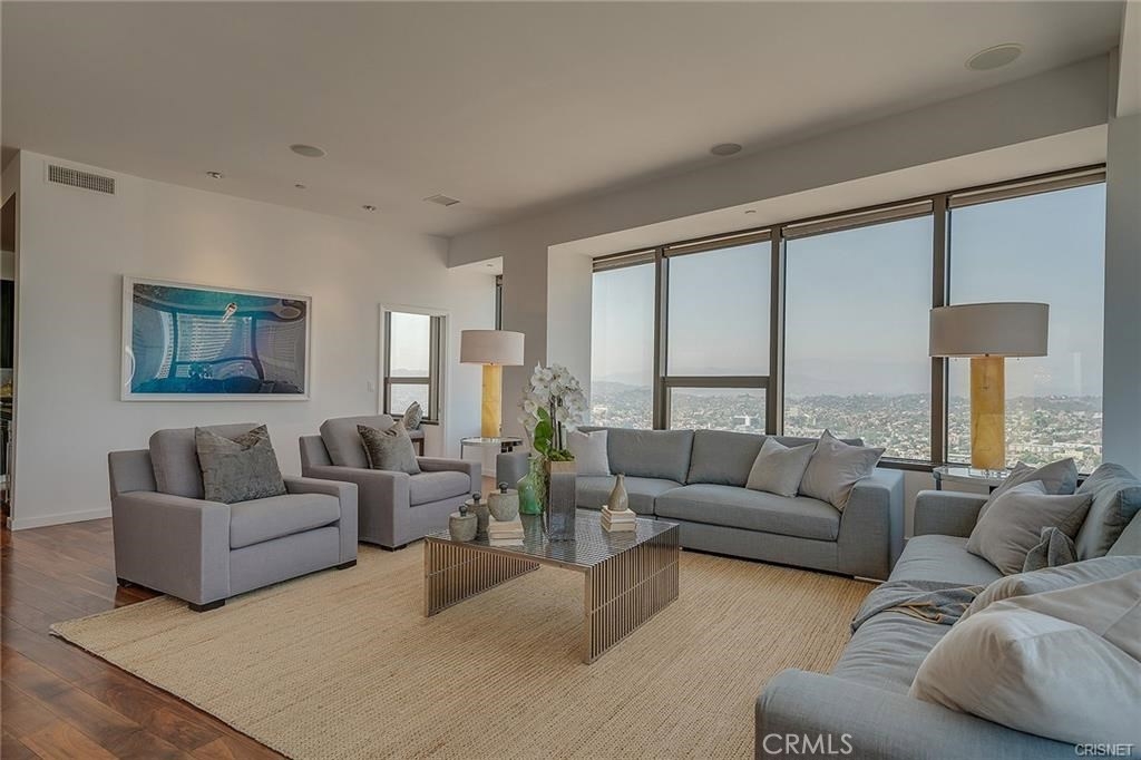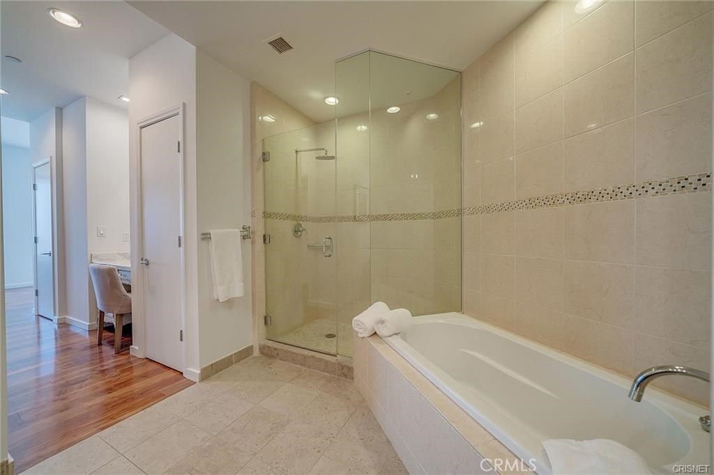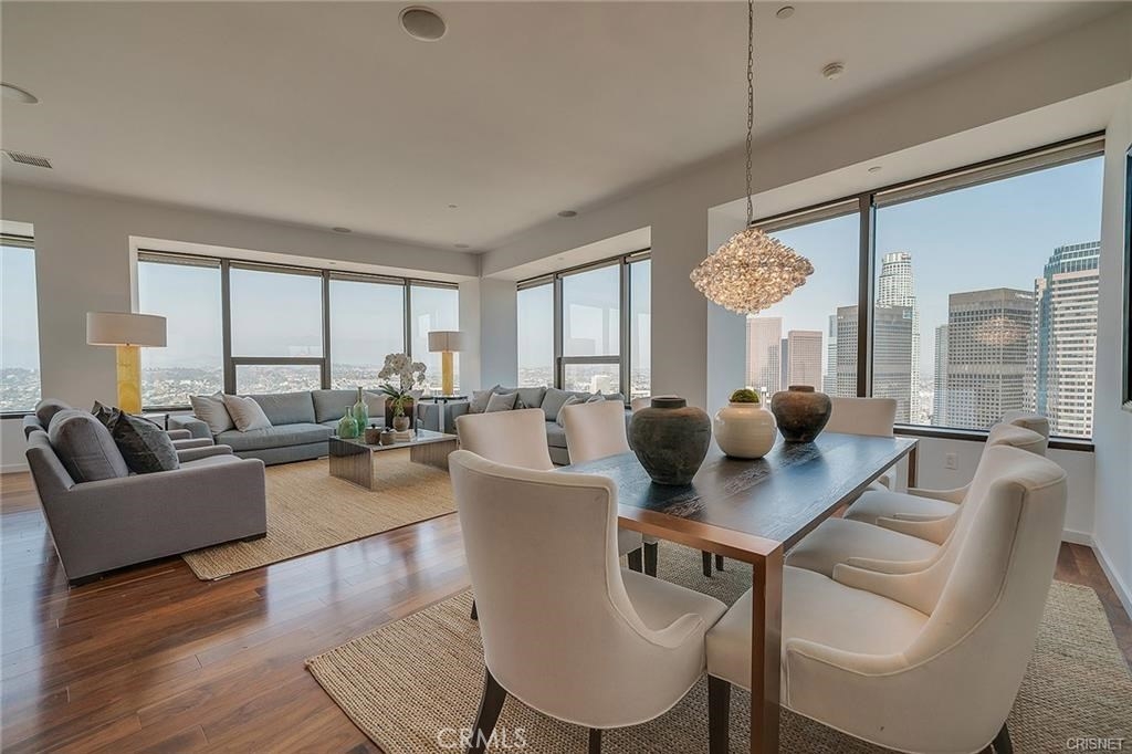 Exquisitely modern 2BD/2BA condominium located in a desirable neighborhood! This unit offers privacy with panoramic views of the city with an impressive 1,870 sq. ft. of upgraded space and comes with 3 deeded side by side parking space on the lower level and 1 deeded storage. As you step in, gorgeous hardwood flooring and high ceilings truly brighten up this already spacious room, while maintaining that cozy chic vibe with recessed lighting and ample amounts of large windows. Open kitchen features all modern designs with European cabinetry, stainless steel appliances, and an island for extra storage and sitting space. This floor plan flows nicely from room to room, providing a great space for entertaining your guests any time of the day. Luxurious master bedroom has great views of the city to start and end your day in, with a sitting area you could enjoy while you sip your cup of coffee. A large walk through closet is complete with built in shelves and a vanity space for your convenience. Master bathroom is your own spa with marble double sinks, a frameless stand-in shower, and a spacious soak-in tub. Second bedroom also features a large walk-in with built-in shelving. Guest bathroom features a steam shower. The complex is impressive in itself, featuring 24hr front desk security, fitness center, swimming pool with deck, a media room, and many more! Located nearby LA Live this condominium is an entertainer's dream to fully enjoy the amazing city life that DTLA has to offer!