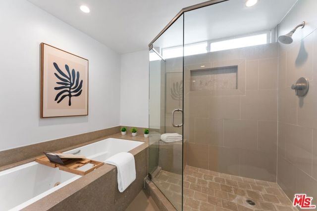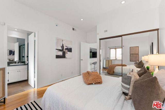 Welcome to this beautifully updated split-level condo in the heart of Brentwood. Situated in a boutique 4-unit building North of Wilshire, this light-filled 2 bedroom, 2.5 bath home offers a thoughtful layout and timeless style. The main level features an open living and dining area with ample windows that bring in natural light, a freshly painted interior, and wood floors that flow throughout the unit. The kitchen connects seamlessly to the dining space, making it perfect for both everyday living and entertaining. A spacious 2nd bedroom with its own en-suite bath completes the lower level. Upstairs, the private primary suite serves as a serene retreat with walk-in closet space and bathroom with soaking tub, separate shower, and dual sink vanity. Additional highlights include a guest powder room, in-unit laundry hookups, secure parking, and low HOA dues. With its prime location in a charming, intimate building just moments from Brentwood's shops, cafes, and markets, this home combines comfort, style, and convenience.