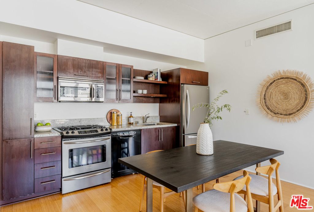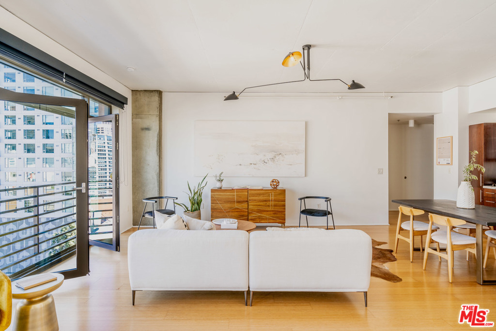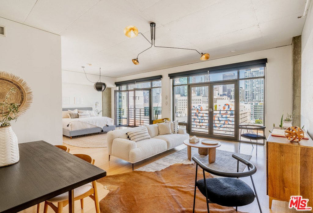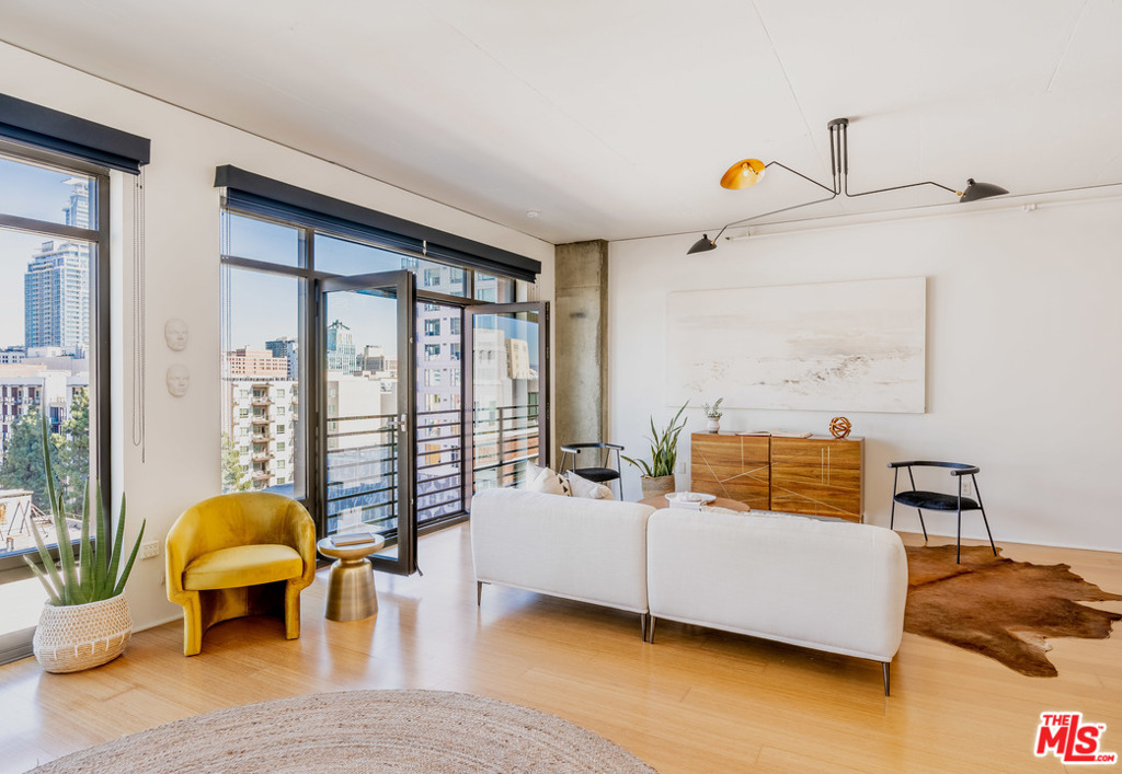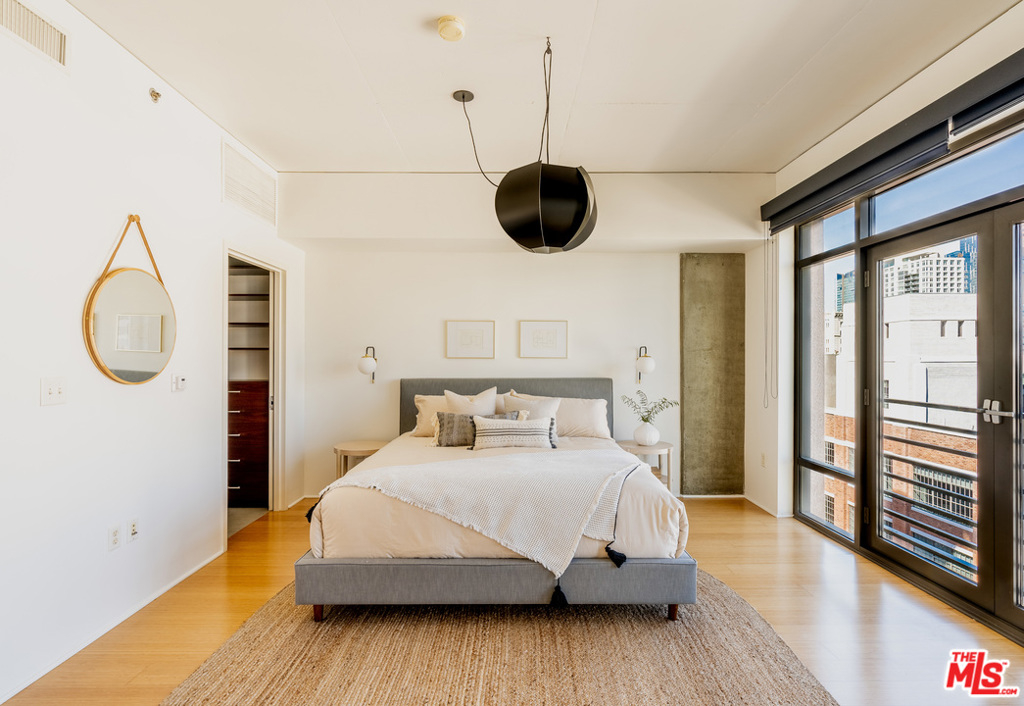 Last chance to own this stunning DTLA Soft Loft Sophisticate, offering jaw-dropping views of the city skyline, now with a new & improved price! Prized north-facing unit in the exclusive Elleven Building is blessed with an open floor plan, high ceilings, and a wall of windows that bathe the entire unit in bright, natural light. Comes w/ a separate deeded storage unit & 1 assigned indoor parking spot next to garage entrance on ground floor. Two large double-paned glass French doors fully open out to 2 Juliette balconies. Freshly painted walls & original natural hardwood bamboo floors. All brand new designer light fixtures and new custom solar & blackout roller blinds were added to the windows last year. Spacious full bath & ample walk-in closet w/ built-in shelving & full-size stackable W/D. European-style kitchen w/ dark refinished cherry cabinets, new SS LG fridge, new Bosch dishwasher, & SS Frigidaire stove & microwave. Resort-inspired amenities include heated salt water pool, jacuzzi, gym access, sundeck, Viking BBQ grills, and outdoor lounge & fireplace. 24/7 Concierge & Security and key card activated elevator. Prime location in South Park, the most high-end neighborhood in DTLA w/ Whole Foods, Ralph's, Staples Center & LA Live only a few blocks away. Starbucks right next door & Prank Bar just around the corner! Easy access to the 110, 10, 101, & 5!