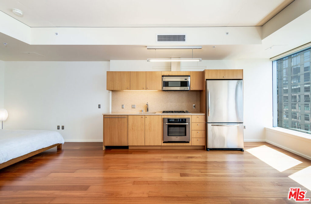 Welcome to Evo at 1155 S Grand Avenue, Residence 1211. Featuring Eastern exposure and SE sweeping scenic views. This studio unit highlights, hardwood flooring, ample storage throughout the gallery entrance, and a well-appointed modern kitchen with stainless steel appliances. Take in the morning sunlight or the nighttime energy through the expansive and tall operable windows. The Evo Tower is located in the vibrant community of South Park, home to Iconic Entertainment venues Staples Center & LA Live, dozens of restaurants and coffee shops, Whole Foods and Ralphs, and more. The luxurious Evo tower features 23 stories of modern construction with a full-service staff (24/7 front desk and security, on-site management, concierge and doorman service, full-time cleaning and maintenance crew), and resort-style amenities (rooftop fitness center and resident lounge, sixth level terrace with multiple Viking bbqs and prep area, sun deck, infinity lap pool, and spa). Live, Work, and Play in DTLA.