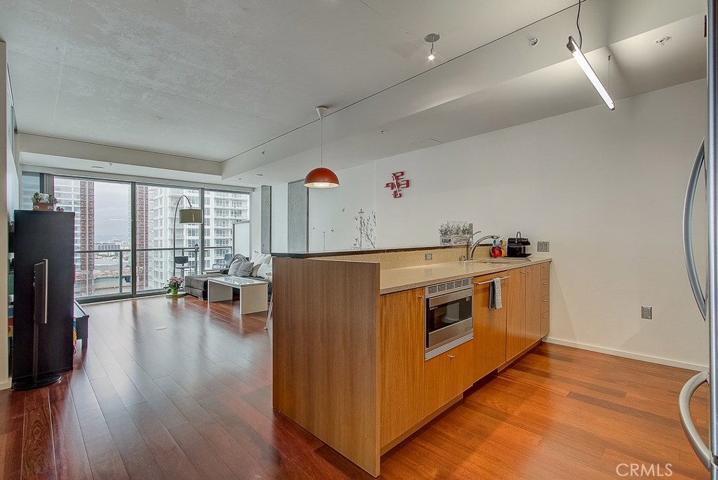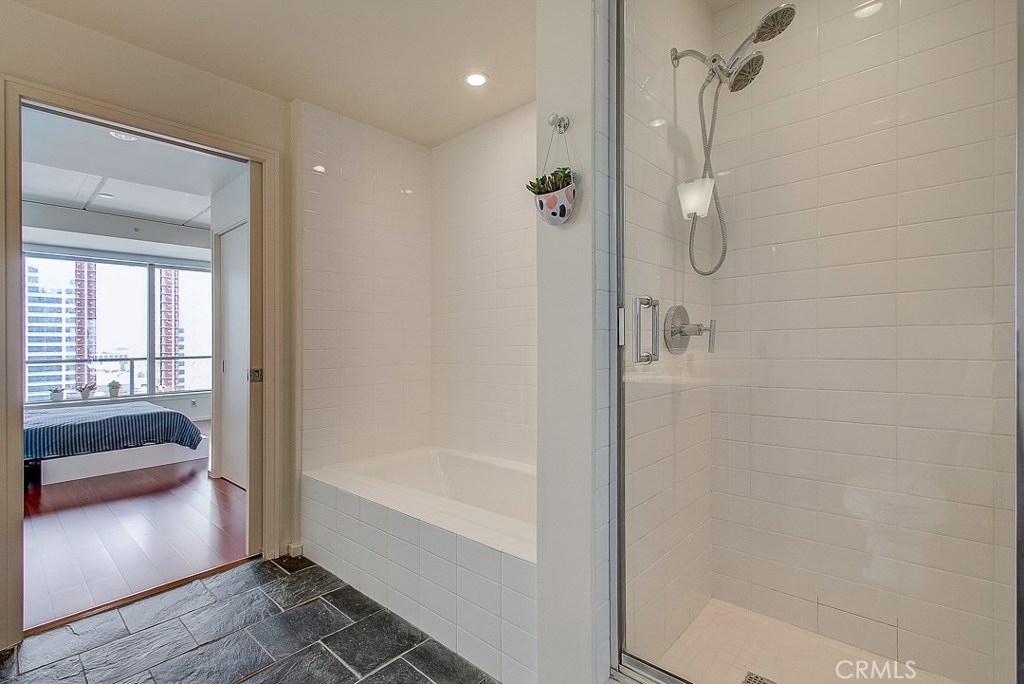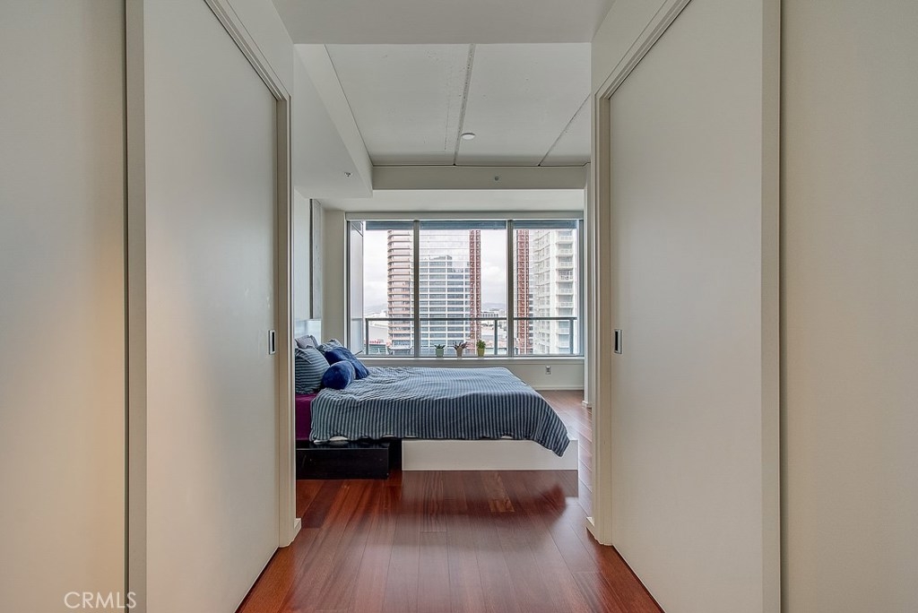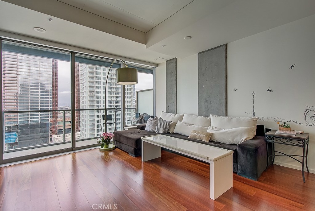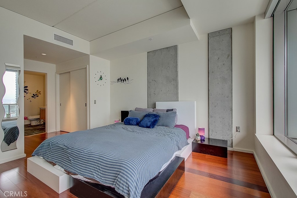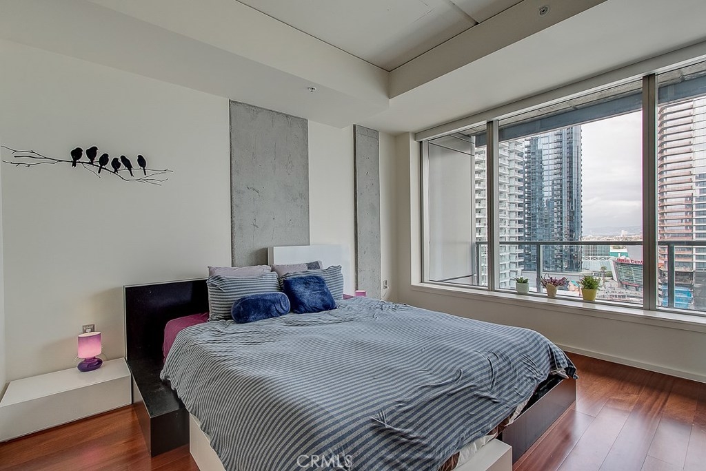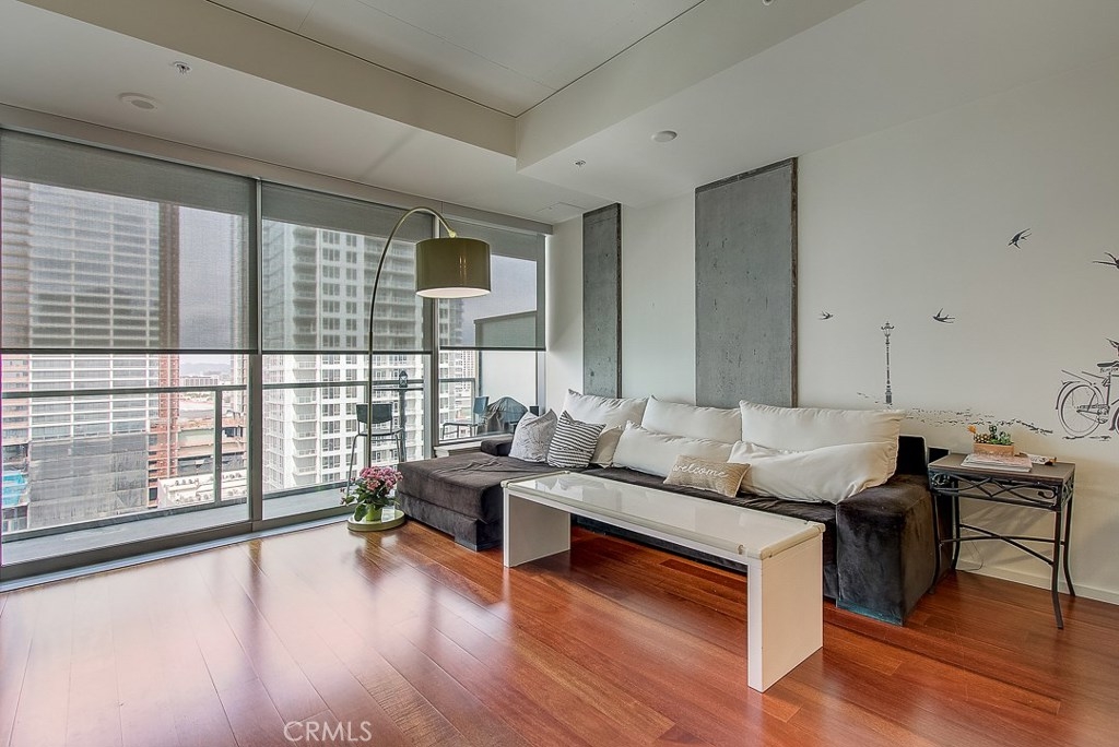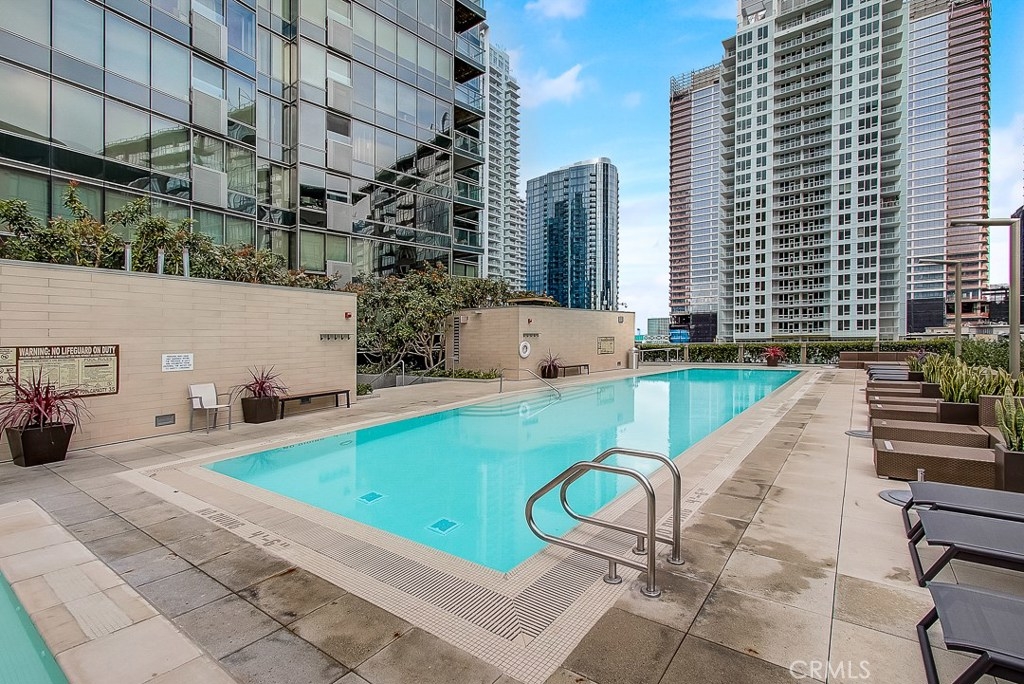 MUST SEE!! This Stunning 2 bedroom 2 bath unit faces the Hollywood Hills with amazing views. One of 3 units with the largest Balcony. Located in a full service "Green" high rise, incredible amenity package including private rooftop an indoor/outdoor lounge patio. Fitness center located on the rooftop. Infinity pool/spa and common area. The 24hr concierge/doorman provides safety and comfort! The building is maintained impeccably and everyone is given a warm welcome upon arrival by the Concierge. The building has employed the same cleaning crew and maintenance team for almost 10 years so you have comfort in knowing and seeing familiar faces throughout the building. Recent upgrades include electric shutter blinds in living room and master bedroom. Sliding door for the Master along with window installation for each rooms to provide privacy which wasn't part of original build. The kitchen overlooks the living room and a Fantastic view of the city. Lots light, however, the Shutter Blinds provide a mask when needed. Walking distance to many of DTLA's attractions and restaurants.https://my.matterport.com/show/?m=HW3zdMB1N8z&brand=0