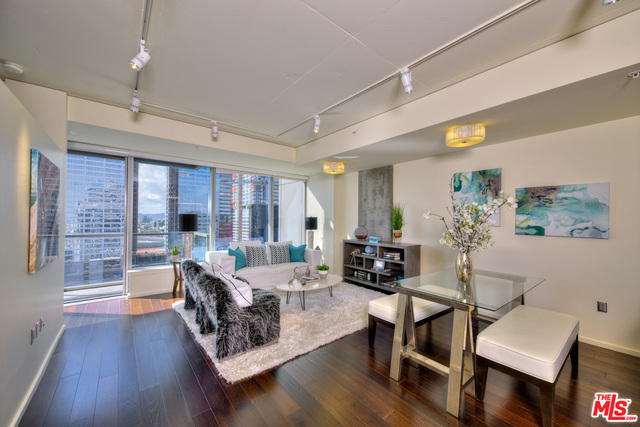 Take on luxury urban living in one of the best developed high rise LEED certified buildings and call EVO home! Located in the most desired area of Downtown Los Angeles in the heart of South Park, this 2 bedroom, 2 bath loft unit offers large windows that leads to a ocean facing balcony with amazing sunset view of the skyline and staples center. It features hardwood floors, modern kitchen and resort-style amenities such a state of the art rooftop gym, sparkling pool and spa and beautiful space for parties and BBQ area. Walking distance to Staples Center, L.A. Live and some of the best restaurants and night life the city has to offer. As a bonus the unit comes with two private underground parking spaces. Don't miss this beautiful unit at Evo.
