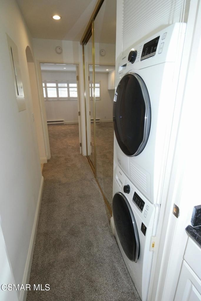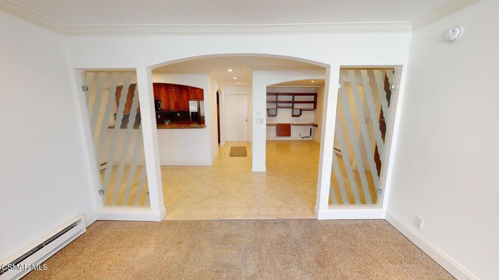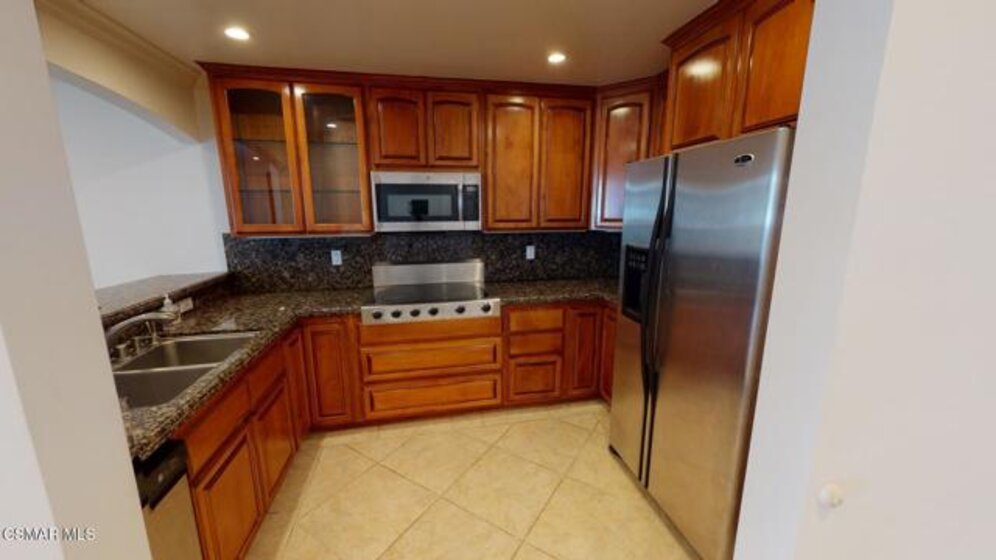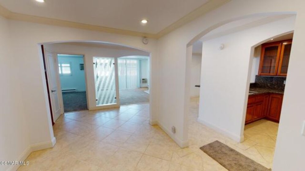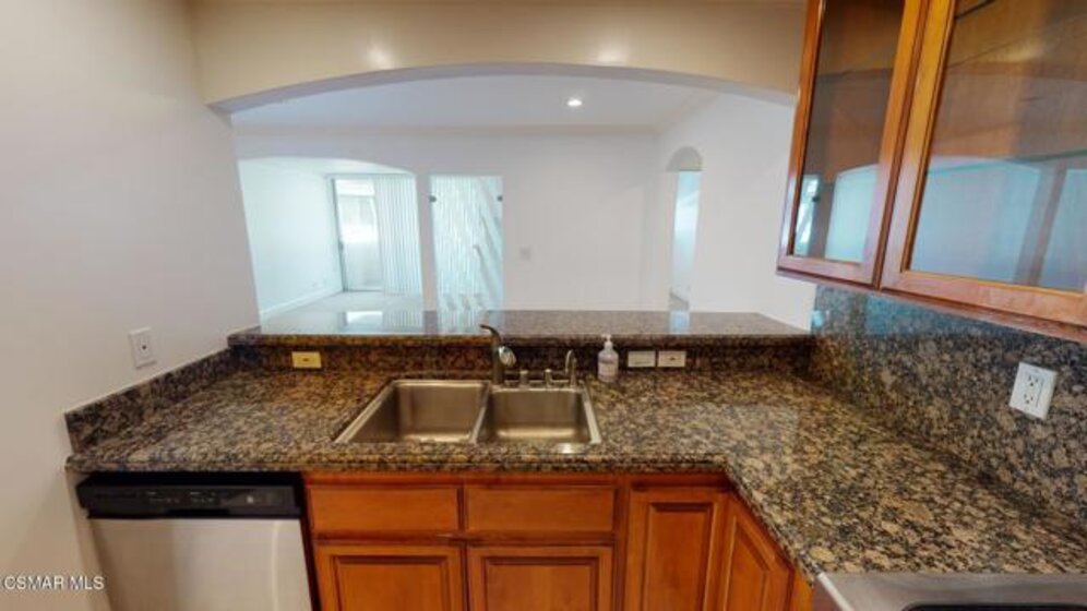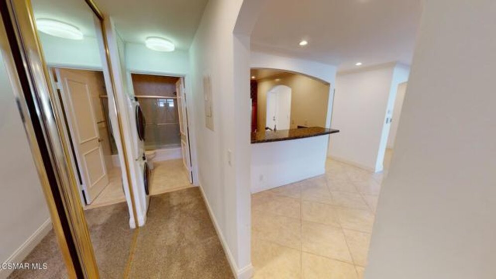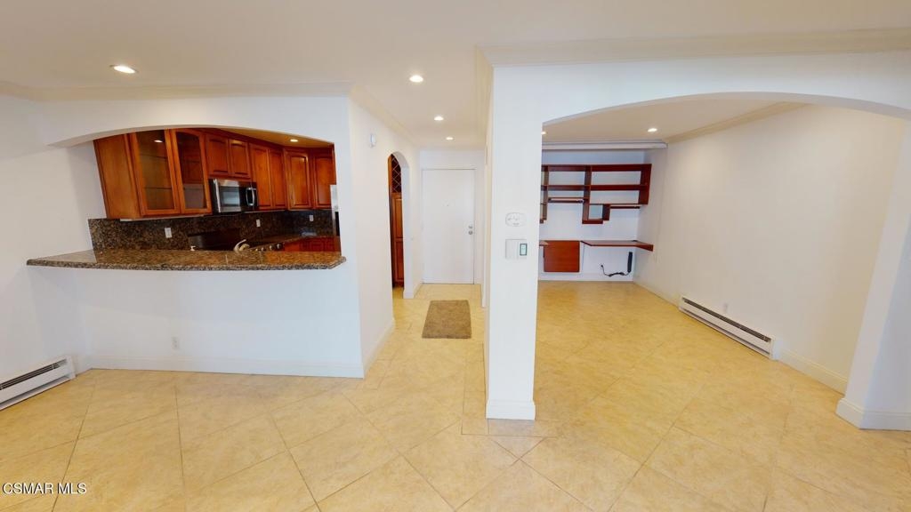 This beautifully updated 2-bedroom, 2-bathroom condo is ideally situated in the heart of Brentwood, offering a perfect blend of style, comfort, and convenience. The home features elegant crown molding, recessed lighting, and sleek tile flooring throughout. The remodeled kitchen is a true highlight, showcasing cherry wood cabinetry, granite countertops, stainless steel appliances, and a refrigerator. Both bathrooms have been tastefully updated with modern tile showers, granite countertops, and upgraded flooring. A versatile flex space provides endless possibilities--ideal for a built-in workstation, cozy TV room, or dining nook--while the light-filled living room creates a warm and inviting atmosphere. The spacious primary bedroom includes a custom closet system for optimal storage. Additional features include wood shutters, in-unit laundry with washer and dryer, and two tandem parking spaces in a secure, gated carport. Residents enjoy community amenities such as a sparkling pool and relaxing spa, perfect for unwinding after a long day. Don't miss this exceptional opportunity to own a move-in-ready home in one of Brentwood's most sought-after neighborhoods.