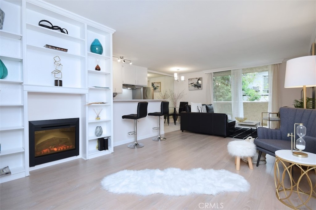 Welcome to this beautiful, chic condo located in the heart of Brentwood! Step in to this light and bright, large upper studio unit offering a wonderful open floor plan that feels more like a one bedroom with den! The spacious living room with custom built in shelving offers a lush, quiet, and tranquil setting with attached covered balcony where you can enjoy your morning coffee. The kitchen is complete with plenty of storage, stainless steel appliances and extended breakfast bar countertop. All this with the adjacent intimate dining area makes entertaining easy with family and friends. The updated bathroom offers great lighting and storage, along with a large walk-in closet with built ins are all great added features to this gem! Montana Terrace is a secured access building with designated parking. Conveniently located near wonderful shops, restaurants, cafes, and all that Brentwood has to offer!