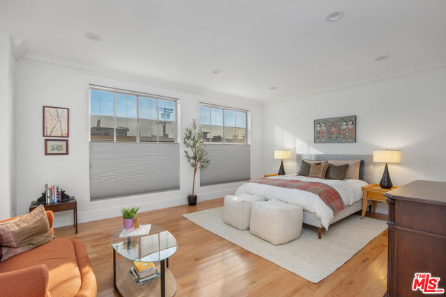 This rare and refined two-story New York style penthouse loft offers an effortless blend of creative space, sophistication, and room for entertaining in the heart of Brentwood. With over 3,100 square feet, this 4-bedroom, 3.5-bathroom residence is a spacious family home and an entertainer's dream. Ideally located blocks from the best of Brentwood - including San Vicente's premier shopping and dining, the Brentwood Country Club, top-tier grocery stores, and the beloved Brentwood Farmers Market, this extraordinary penthouse delivers both convenience and comfort in one of LA's most desirable neighborhoods. Soaring ceilings and expansive north-facing windows flood the space with natural light, city views, and mountain views - offering brightness all day long and unforgettable sunsets. The open-concept floor plan features an expansive living area, a formal dining area, and a chef's kitchen. Overlooking the main living space is a spacious second-story loft, ideal as a home office, lounge, or creative area such as a home gym or art studio. The designer kitchen is open-concept, outfitted with custom cabinetry and top-of-the-line appliances, including a Sub-Zero refrigerator, Wolf gas cooktop, double oven, and microwave drawer, along with a hidden dishwasher. All main-level bathrooms have been thoughtfully renovated with high-end finishes. The primary suite offers a generous walk-in closet and a spa-like en-suite bathroom featuring a soaking tub. Three bedrooms are located on the main level, while the fourth bedroom and loft sit upstairs alongside a laundry area with washer/dryer and direct access to the private rooftop deck. This outdoor space features artificial turf, bistro lighting, a gas fire pit, and panoramic views - perfect for sunset gatherings or peaceful mornings in the sun. This exceptional home must be experienced in person to be fully appreciated.