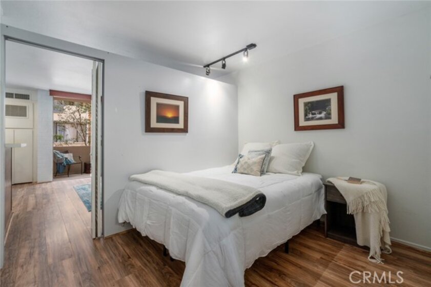 Newly refreshed white kitchen cabinets! Welcome to one of the best deals in Brentwood! This light & bright updated one bedroom condo is located in the heart of Brentwood, just a block from Brentwood Village. The condo features a lovely open floorplan with the kitchen open to the dining and living areas. The second-floor location offers nice security and convenience for anyone who loves to start their day with coffee and fresh air on their own patio. The condo faces the interior courtyard, so it maintains its security within this gated building. The building is well maintained and includes a sunny pool area, gym, sauna, meeting room, cool roof top deck and modern lobby. Stroll to the Village and enjoy restaurants, parks and the Sunday Farmer’s Market. Other features include AC, two assigned garage parking spots, guest parking, a secure building and ideal location for commuting.