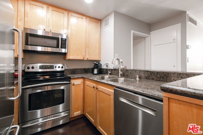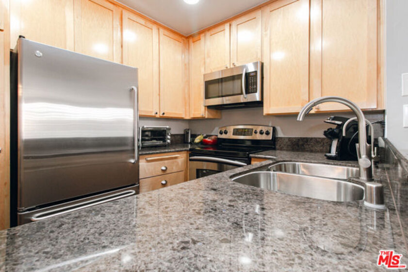 Beautifully remodeled 3rd- floor unit in the heart of Brentwood Village, one of the premier neighborhoods in all of Los Angeles. Set away from the street with a courtyard view, this stunning unit features an open kitchen with granite counters and stainless steel appliances. The bathroom was recently upgraded with high-end Italian tiles and fixtures. Spacious living room with large private balcony, wood floors, central heat and A/C. This unit features exposed brick accent walls and comes with 2-Car Parking in the gated community garage. The building has wonderful amenities such as a pool, new exercise room, controlled access lobby and garage, guest parking, rooftop garden, rec room, elevator and new mailroom for packages. Incredible location just blocks to the best that Brentwood has to offer including Belwood Bakery, Starbucks, Clarks, Peppone's, salons, shops and Barrington Park. Near UCLA, the 405, and transportation. This is a great opportunity- won't last!