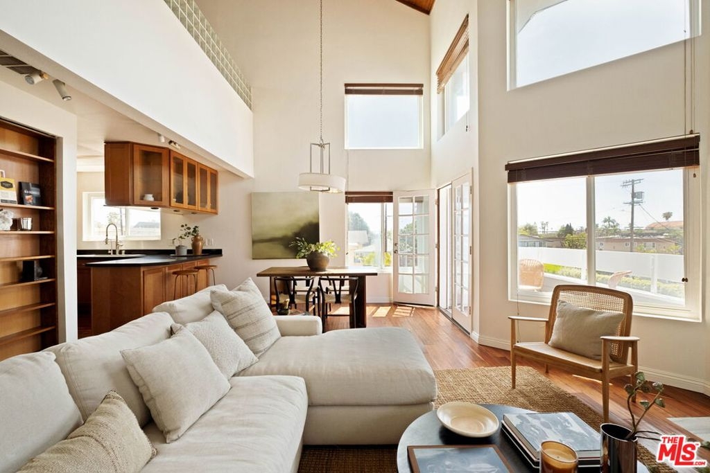 Infused in natural light, this turnkey west facing 2 bedroom + loft (or optional third bedroom) features soaring 22 ft ceilings and a massive rooftop deck with panoramic views. Upon entry, a voluminous living area with floor-to-ceiling windows and fireplace, effortlessly blends with the open concept gourmet kitchen, complete with quartz countertops, custom wood cabinets and stainless steel appliances. Down the hallway are two generous size bedrooms including the primary suite with 2 separate closets. Upstairs is an expansive versatile loft area perfect as a home office, secondary living room area or 3rd bedroom. Additional amenities include a gated and meticulously maintained building, central heat & air, in-unit laundry, and secured gated parking. Situated in a prime Del Rey/Mar Vista location with all the great shops and restaurants and moments from the beach, downtown Culver City, and the vibrant Mar Vista Farmers Market, this is truly an extraordinary opportunity not to be missed.