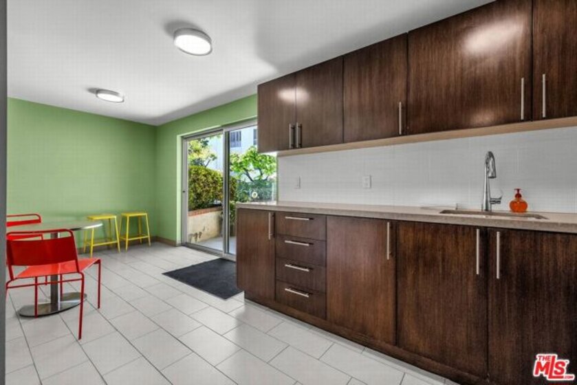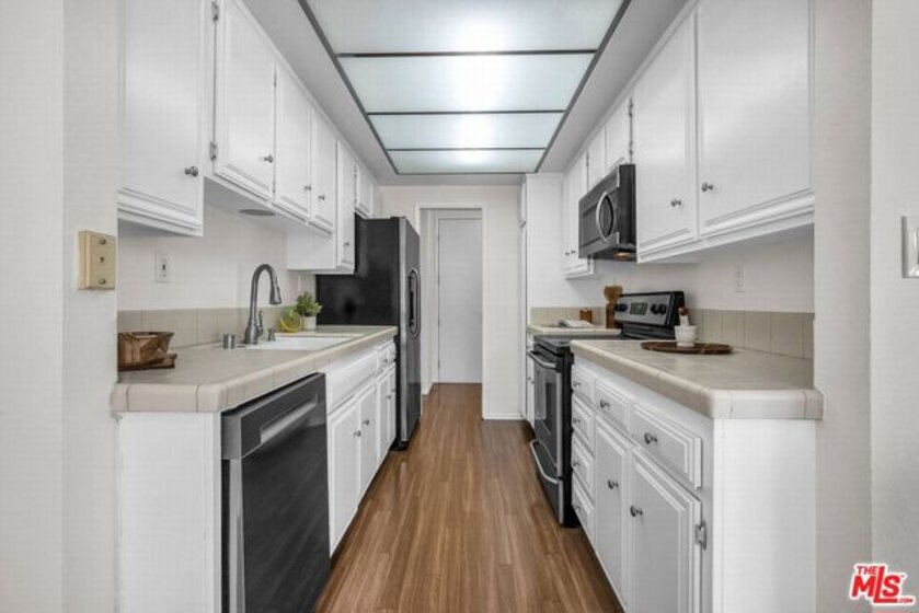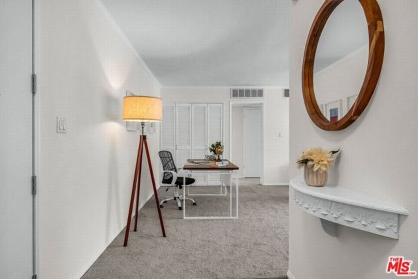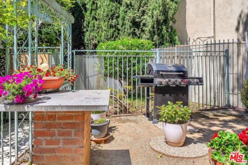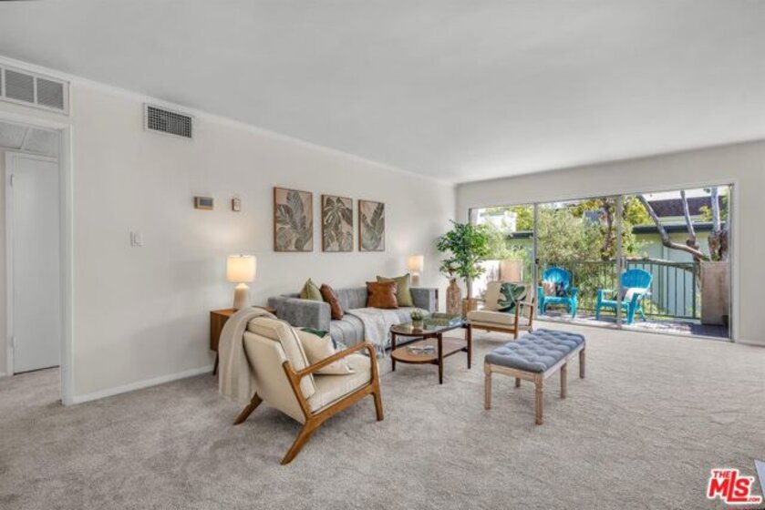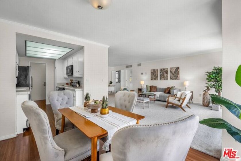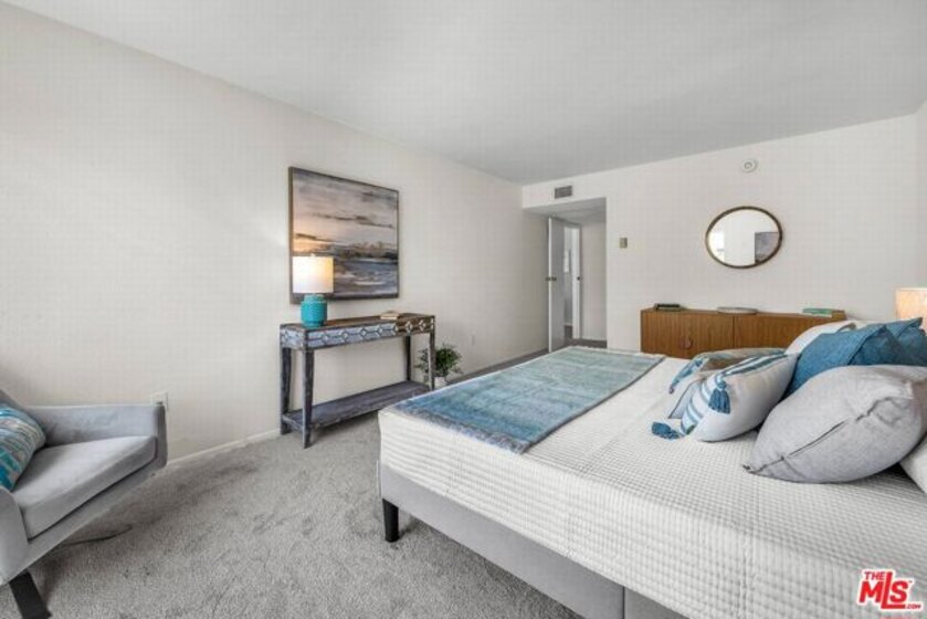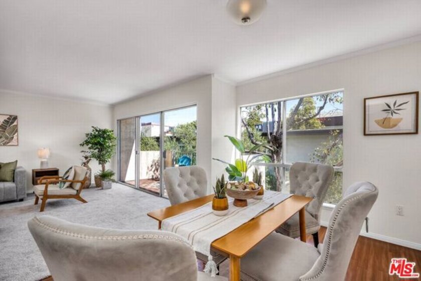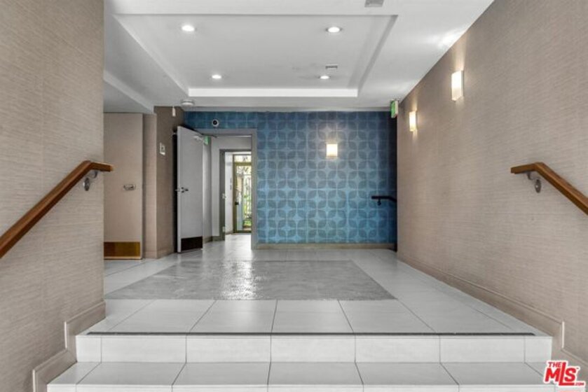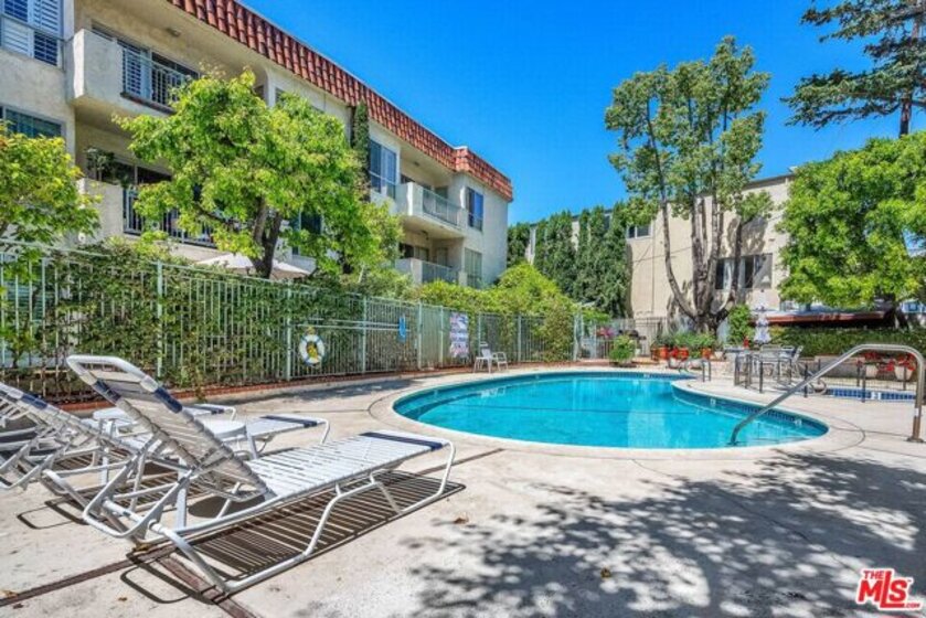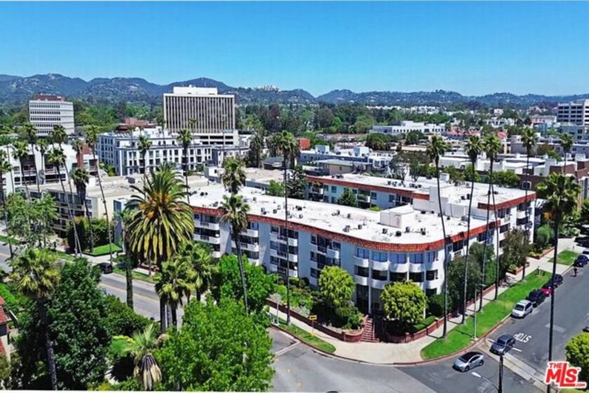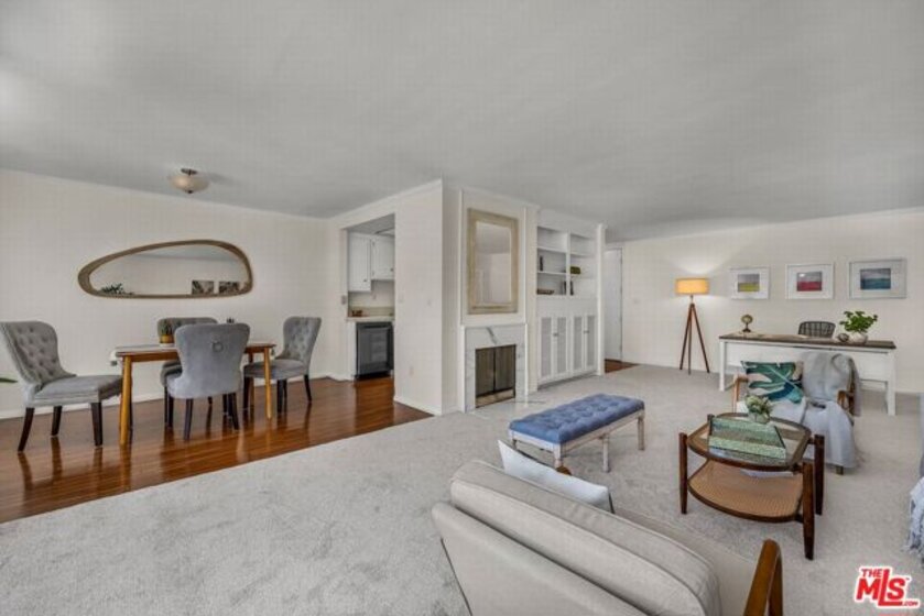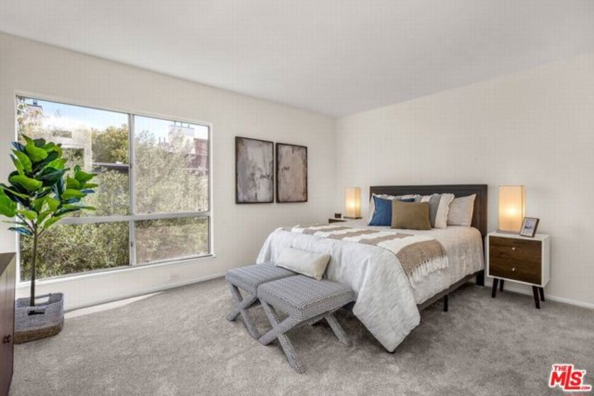 A RARE opportunity to own a TOP FLOOR, spacious and bright 2 bedroom 2 bath unit in one of Brentwood's most sought after high-end luxury buildings. A MUST SEE! The first two bedroom available in the building since 2022! This quiet rear facing unit features a fantastic center hall open floor plan with a expansive living room with high ceilings, fire place and wet bar and an elegant dining room, leading to an ample balcony with unobstructed tree top views. The dining room could be be closed off to be converted to a den or home office. Great for entertaining or enjoying leisurely dining. Two large bedrooms located at opposite sides of the unit for privacy, both with ample walk-in closets. Galley kitchen with newer stainless steel appliances. Closets galore throughout the unit. Fresh interior paint and brand new carpet in bedrooms and living room. Additional features include two side-by-side parking with an assigned storage unit in the garage. Community laundry is conveniently located close to the unit. This secured complex offers a resort lifestyle with pool, BBQ area, recreation room with shower/sauna, peaceful courtyard, and a beautifully updated common area that feels like a boutique hotel. EV stations are in the process of being installed. In a Prime Brentwood location just steps away from Sunday's Farmer's Market, top restaurants, stores, and coffee spots.