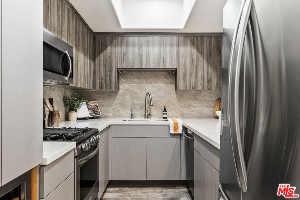 Bright and spacious, this beautiful 2-bedroom + den/office condo is ideally situated in the heart of Brentwood. The den/office is ideal for working from home, hosting guests, or creating an optional third-bedroom setup, while custom built-in shelves, ample storage, and an in-unit washer/dryer add everyday convenience. With high-ceilings, this single-level condo offers a fantastic open floor plan with a spacious family room, two primary suites with walk-in closets, and oversized windows that fill the home with natural light. The remodeled kitchen features stainless steel appliances and an easy flow for everyday living and entertaining. Enjoy an unbeatable Brentwood lifestyle - walking distance to the Brentwood Farmers' Market, popular shops, and restaurants, with the beach just a short drive away.