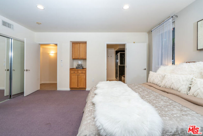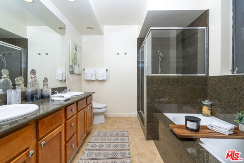 Sitting pretty on the second floor, this condo gets all the perks, none of the street-level worry, and a whole lot of that interior-courtyard chill. With 2 bedrooms, 2.5 baths, and about 1,525 SF, it opens up the moment you walk in, giving you space to breathe, spread out, and actually live. Bonus points for two outdoor areas facing the courtyard so your morning coffee, Zoom breaks, and late-night unwinding all stay peaceful and private. The living and dining areas flow right into a granite-and-stainless kitchen with a breakfast bar that's perfect for real life, on the go. Fresh paint, full-size laundry, and more storage than you'd expect make day-to-day life feel easy. And the living room? It's huge, bright, and opens to a balcony that looks out over the courtyard like your own little treehouse moment. The primary suite steals the show. It's tucked into its own corner of the home, big enough for a California King and all the furniture! It comes with a dual-vanity bath, soaking tub, step-in shower, great closets, and a second balcony with extra storage. The building brings the essentials: secure entry, a fitness center, guest parking, and two side-by-side parking spaces (15 and 16). Earthquake insurance is included, because of course it is! And the location gives you serious West LA bragging rights. Santa Monica College, Stoner Park, Trader Joe's, Whole Foods, Milo & Olive, and basically every good Wilshire and Santa Monica Blvd hangout are right there. A second-level sanctuary with space, style, and that "ahhh" courtyard vibe. Go ahead, fall a little in love.