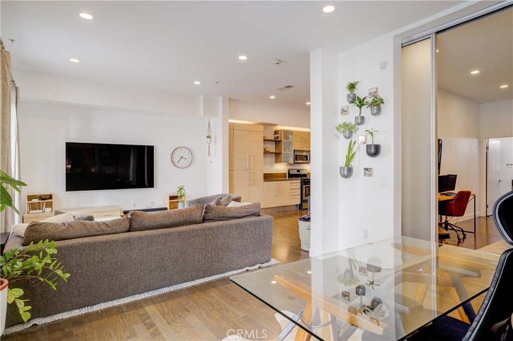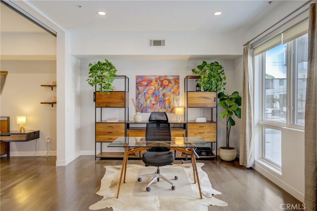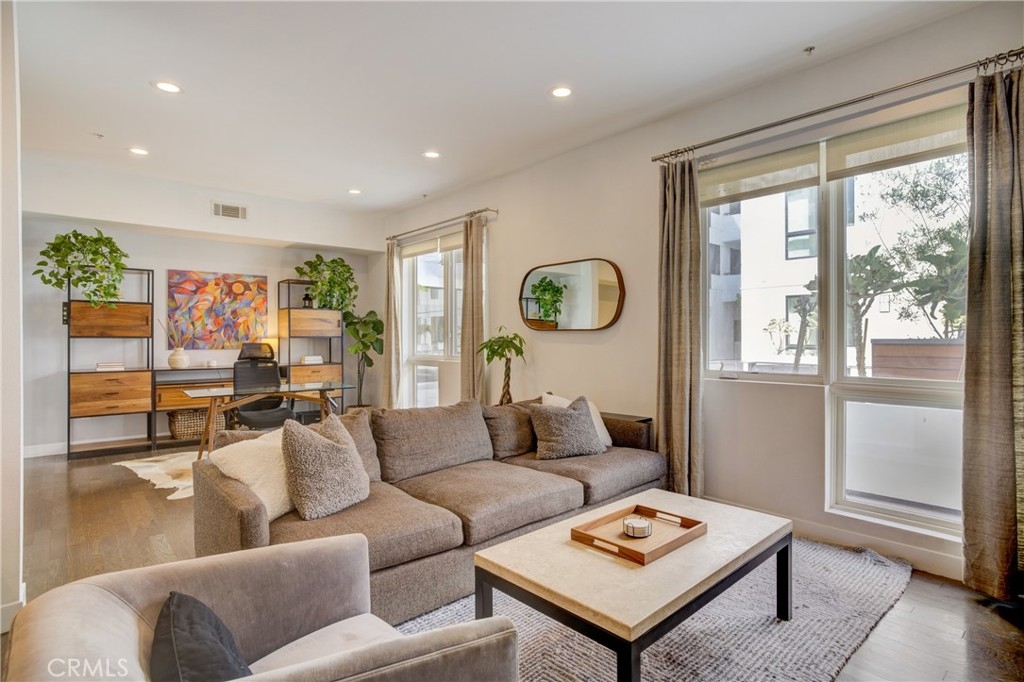 Modern Urban Living at Vero - 1 Bed + Den/Office, 1.5 Bath Contemporary Condo. The Vero is an urban, stylish complex located in the Central City West neighborhood of LA, adjacent to the Good Samaritan Hospital and nearby Financial District. The interior offers a versatile floorplan, maximizing natural light with its high ceilings, expansive windows overlooking the courtyard, smart home, recessed lighting, fresh paint, HVAC. Modern kitchen features lots of cabinets, counter space, and stainless-steel appliances, in unit laundry. Amenities include luxury lounge seating, barbecues and fire tables, common area Wi-Fi, elegant two-story lobby area, fitness center, sparkling pool/spa, dry cedar sauna, two conveniently located parking spaces, gated parking garage, on-site management and minutes from LA Live, Crypto.com arena, Nokia Theatre, 7th & Fig, USC, and all that downtown LA has to offer. Come see, you will not be disappointed!