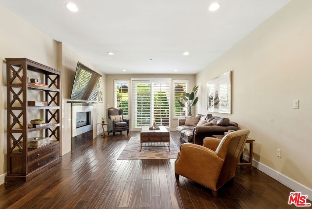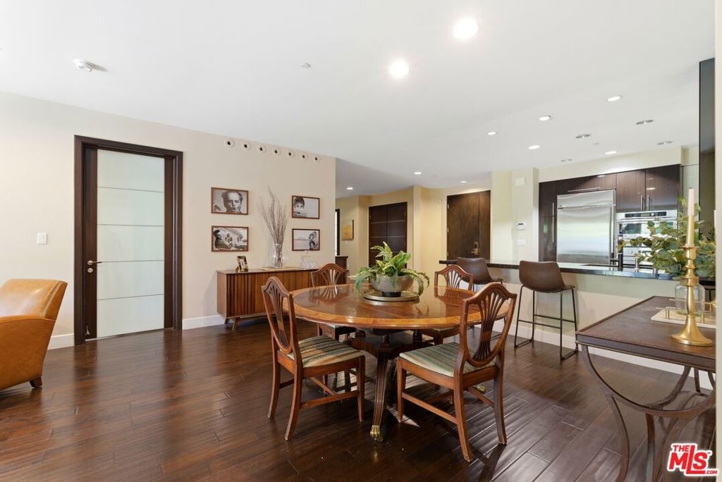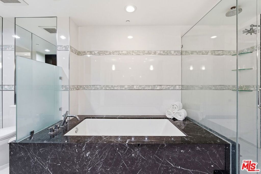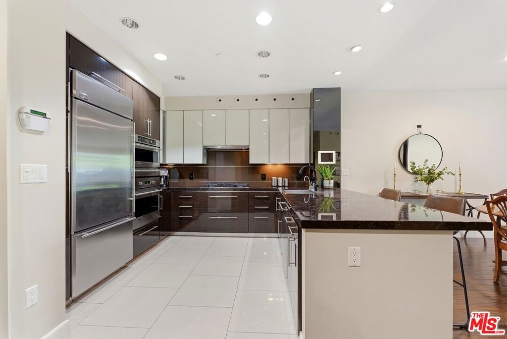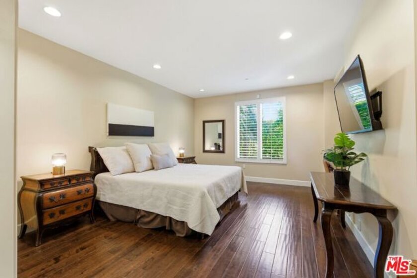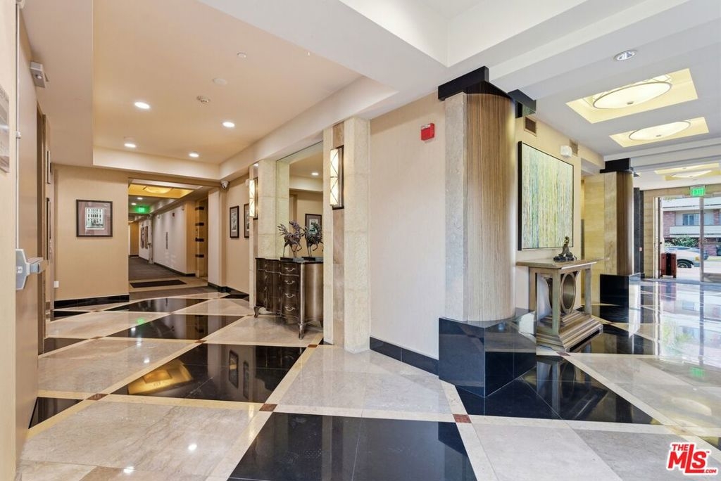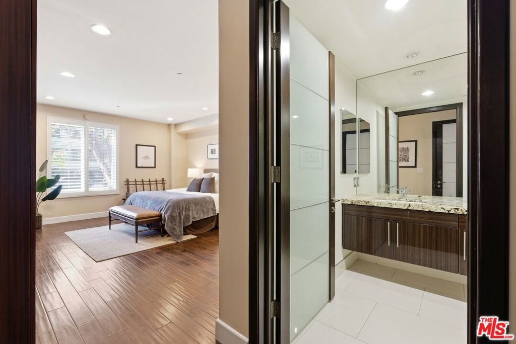 Welcome to your modern 2BR/2.5BA condo located in the Art Deco-inspired Roxbury Place building just steps from Beverly Hills. This spacious 1,991 sq. ft. west-facing first-floor residence features excellent natural light, nine-foot ceilings, and designer finishes throughout. Interior features include dark hardwood floors, recessed lighting, and an open-concept living and dining area that leads to a private tree-lined balcony. The kitchen offers granite countertops, bar seating, and ample cabinet space. The two primary bedroom suites are situated on opposite sides of the living area for privacy, and each includes a spacious en-suite bathroom with dual vanities. The larger primary bathroom features a soaking tub and separate shower. Additional features include a gallery-inspired entry hall, powder room, large storage closet, and in-unit laundry. Building's luxury amenities include concierge service, fitness center, and outdoor lounge area. HOA dues include earthquake insurance. Conveniently located approximately one mile from Roxbury Park and just minutes from the shopping, dining, and entertainment along Rodeo Drive, South Beverly Drive, and the business district of Century City.