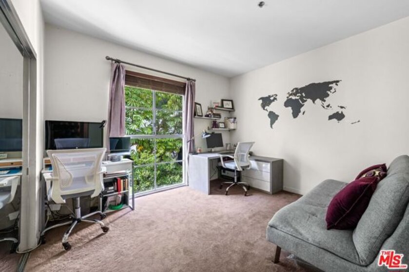 Unbeatable, Prime Westwood Location! This stunning 2 bedroom, 2.5 bath corner condo sits on a serene, tree-lined cul-de-sac, offering a quiet retreat just minutes from UCLA, a block from Westwood Park, and moments from the best shopping and restaurants in Westwood Village, Century City, and Beverly Hills. Inside, discover luxury with soaring high ceilings, hardwood floors, and abundant natural light. The floor plan is perfect for privacy, featuring two true master suites on separate ends. The main primary suite is a spa-like sanctuary, boasting a deep soaking tub and a separate glass shower, complemented by expansive, custom closet space plus an additional walk-in closet. The open-concept living area and kitchen lead to a spacious private balcony. The dining area adds an additional space for meals or an at-home workspace, depending on your lifestyle. Comfort is guaranteed with a brand new HVAC system and in-unit laundry. Secure living is afforded in this well maintained, small 14 unit building which includes an intercom-entry with gated parking and two tandem parking spaces. Perfect for first-time buyers, investors or natives to the area who want to live the quintessential Westside lifestyle!