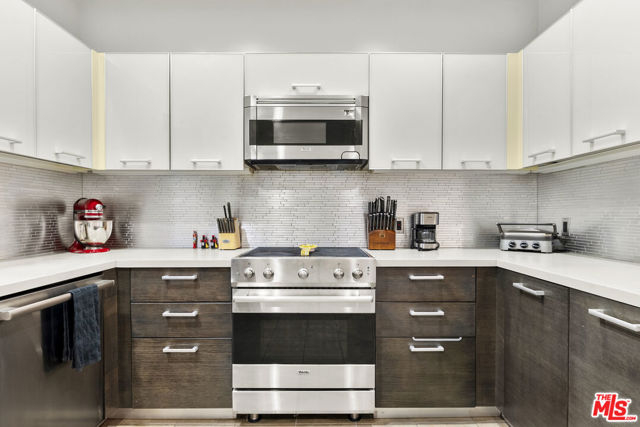 An eye-catching designer condo that blends sophistication with comfort. The open-concept living area features soaring ceilings and rich hardwood floors, while the gourmet kitchenequipped with Viking stainless steel appliancesflows effortlessly into a dining space illuminated by a striking modern chandelier and into the inviting living room. Large sliding glass doors open to a private balcony perfect for morning coffee or evening relaxation.The expansive primary suite offers a serene retreat, complemented by a spa-inspired bathroom with a deep soaking tub. A spacious second bedroom and bathroom provide comfort and versatility for guests, work, or creative pursuits.Enjoy peace of mind with secure gated entry, digital key-access, and impeccably maintained grounds. Just minutes from Hollywood's hotspots and the vibrant Sycamore District home to Tartine, Gigi's, Deitch Gallery, and more The Verve offers the ideal balance of urban sophistication and modern serenity.
