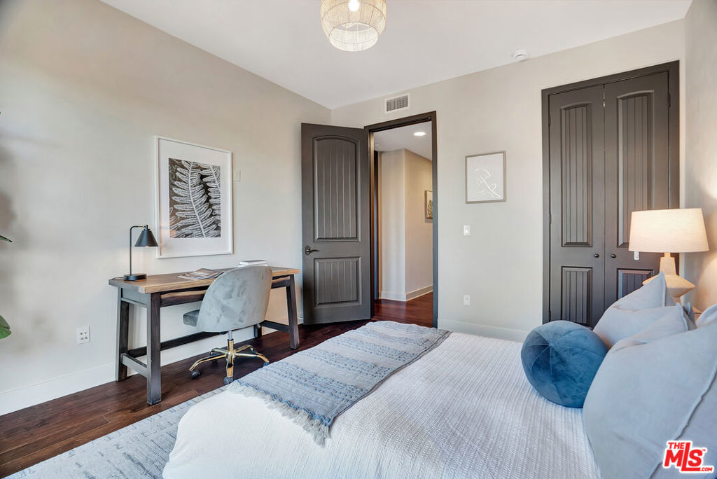 Introducing a truly exceptional southwest corner residence offering 1,721 square feet of living space within an intimate Tuscan-inspired building completed in 2005, with only four residences per floor and no shared walls. Bathed in natural light, this sophisticated two-bedroom, 2.5-bath home blends timeless elegance with modern comfort, featuring soaring ceilings, rich wood flooring, a formal entry, and an expansive open-concept design ideal for both entertaining and daily living. The beautifully appointed kitchen showcases polished granite countertops and premium stainless-steel appliances, flowing seamlessly into the impressive living and dining areas anchored by a statement marble fireplace. A generous front-facing balcony extends the living space outdoors, inviting gentle breezes and breathtaking sunset vistas. The grand primary suite offers a private retreat, complete with a spacious walk-in wardrobe and a spa-caliber bath featuring dual vanities, a deep soaking tub, and a separate glass-enclosed shower. The well-proportioned secondary bedroom enjoys its own full bath, offering flexibility for guests, family members, or a sophisticated home office. Additional features include in-residence laundry, secure gated parking, guest parking, private storage, and remarkably low HOA duesan uncommon value for a residence of this caliber. Ideally situated on the coveted Westside, the property is moments from the world-class shopping, dining, and cultural destinations of Beverly Hills, Century City, Westwood Village, and the prestigious University of California, Los Angeles. The property is also within walking distance of several synagogues and churches. For exceptionally qualified buyers, an opportunity exists to assume the current mortgage at 2.5% fixed October 2030 - creating a remarkable opportunity in today's market.