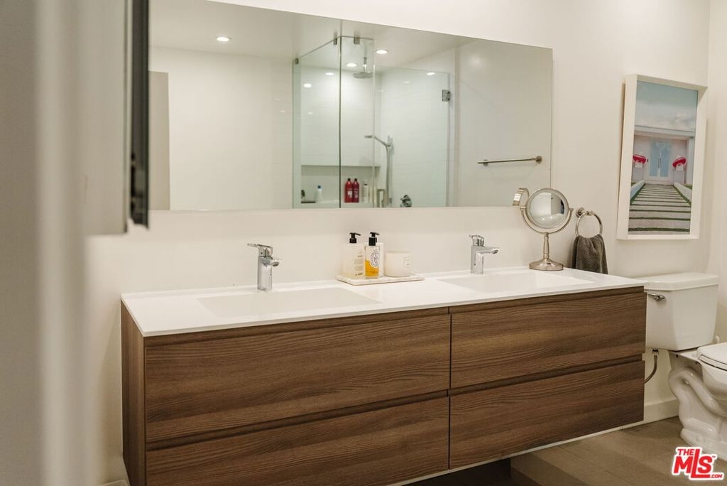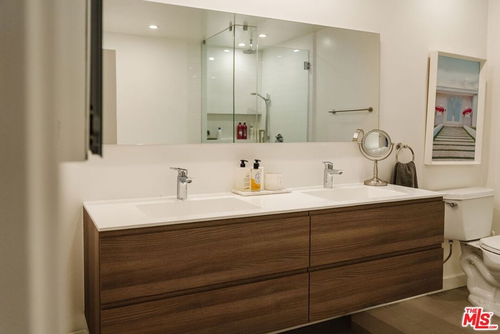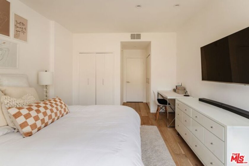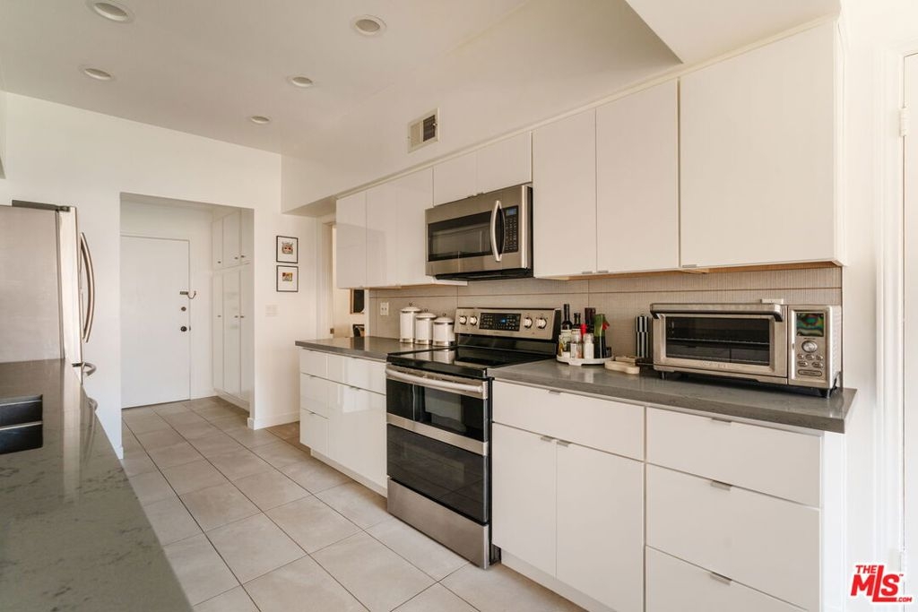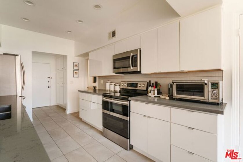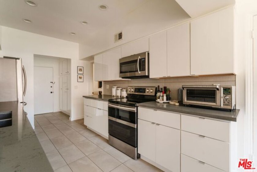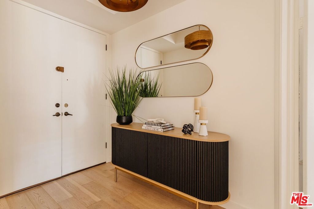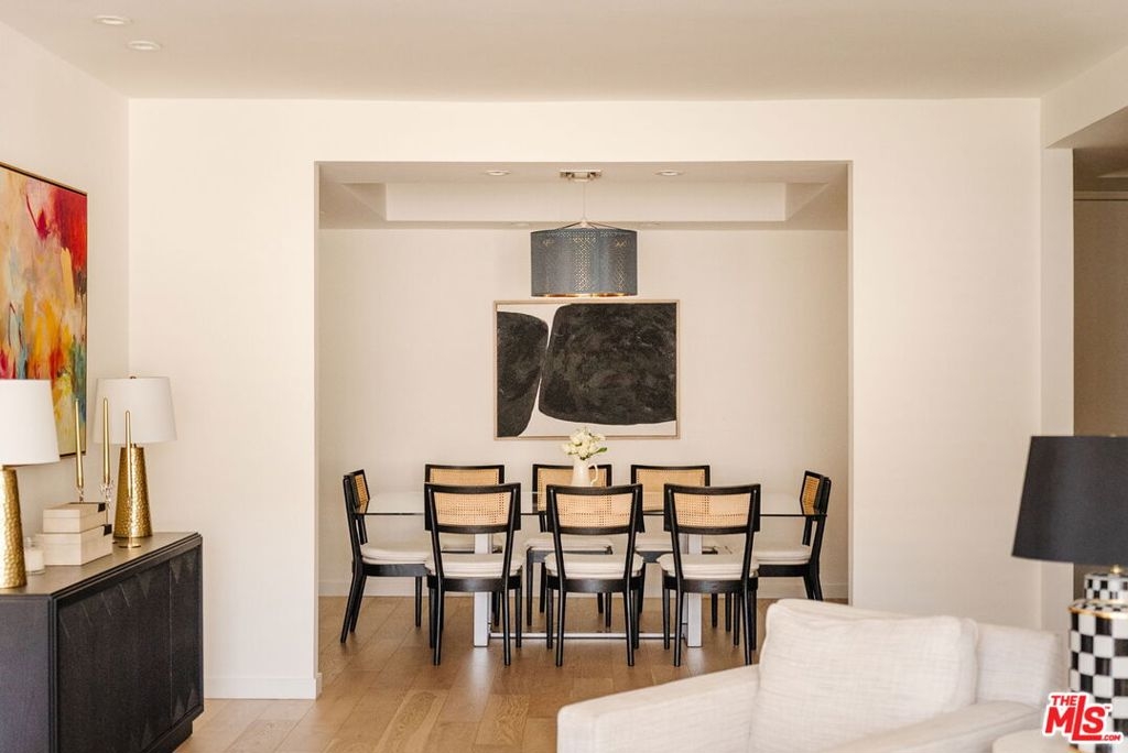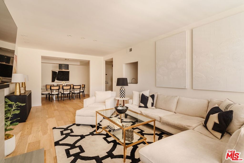 Enter through double doors into a gracious foyer that sets the tone for this beautifully renovated and light-filled 2-bedroom, 2-bathroom residence in prime Westwood. Spanning approximately 1,737 square feet, the home offers an exceptional sense of scale, high ceilings, and a thoughtfully designed floor plan with generously proportioned living spaces throughout. The expansive living room is both warm and sophisticated, centered around a gas fireplace, and seamlessly opening to a private patio and a formal dining room an inviting setting for both everyday living and refined entertaining. The chef's kitchen has been tastefully updated with stainless steel appliances, sleek cabinetry, stone countertops, and exceptional storage throughout, and flows effortlessly into a spacious breakfast area. A separate laundry room and pantry enhance both convenience and functionality. The oversized primary suite serves as a true retreat, featuring a large walk-in closet, additional hall closet, and a spa-inspired bathroom with dual vanities, a soaking tub, and a glass-enclosed shower adorned with designer fixtures and European porcelain tile. A well-appointed secondary bedroom and updated guest bath complete the bedroom wing. Wide-plank oak hardwood floors, recessed LED lighting, updated electrical outlets and switches, and freshly painted interiors contribute to a crisp, modern aesthetic throughout. Additional amenities include secured access, side-by-side parking with storage, and a well-positioned, front-facing unit within the building. HOA dues include earthquake insurance and internet. Ideally located just moments from UCLA, Century City, Brentwood, and a vibrant mix of shops, restaurants, grocery stores, and everyday lifestyle amenities, this turnkey residence offers an exceptional balance of space, style, and convenience in one of the Westside's most desirable neighborhoods.