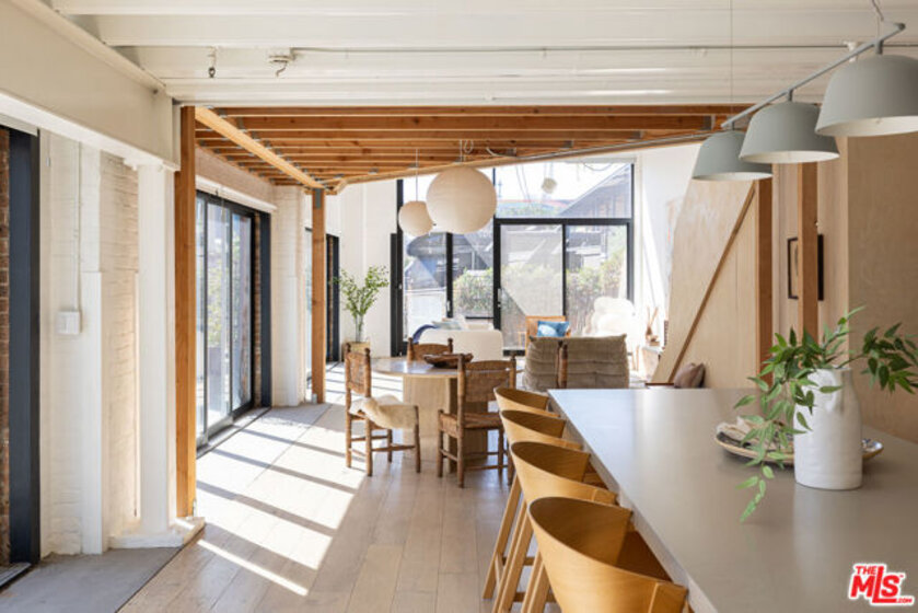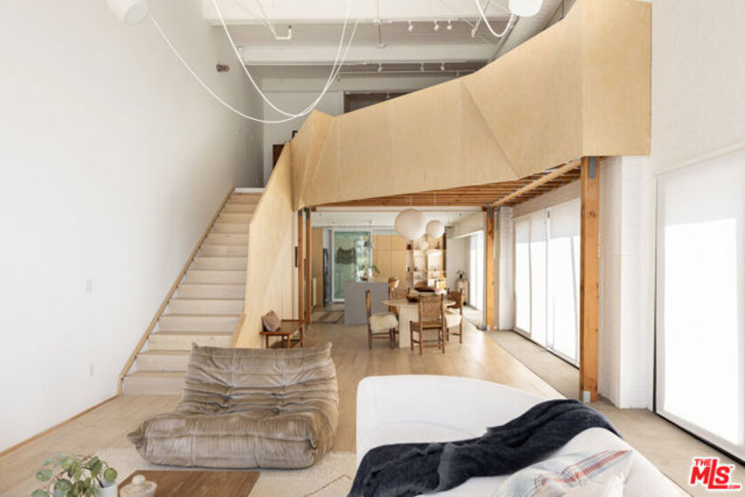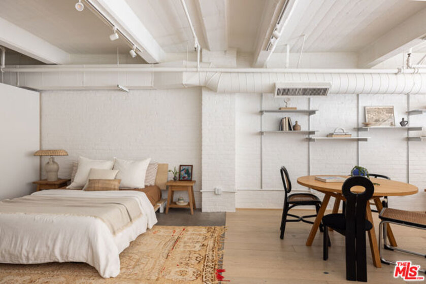 Reimagined by OWIU Studio, this distinctive loft marries traditional Japanese design principles with modern innovation to stunning effect and has been featured in Elle Decor, Forbes, Wallpaper, and Dezeen. Set within the iconic Biscuit Company Lofts, a seven-story factory built in 1925 and later converted into luxury residences, Unit 107 is unlike any other in the building. Step inside from a private courtyard to soaring 18-foot ceilings and an expansive open living space. Dramatic custom lighting and a spacious chef's kitchen, complete with concrete dine-in island and top-tier appliances, set the tone for effortless entertaining. Along the main level, 42 feet of sliding glass doors open wide to a quiet, off-street corner, making this the only loft in the building with this rare connection to the outdoors. A flexible guest bedroom doubles as a serene second living space, designed with Japanese-style built-ins, concealed storage, and raised tatami-style platforms that function as both bed frame and contemplative gathering area, perfect for tea ceremonies, reading, or creative inspiration. A soaring staircase, crafted from ten custom-fabricated panels with four angled interventions, leads to the mezzanine. Floating above the main level, this versatile balcony makes for an inspiring home office or studio. Upstairs, the primary suite offers a new walk-in wardrobe and en suite bath with dual floating vanity and a Japanese soaking tub. Residents of Biscuit Lofts enjoy a 75-foot saline pool, outdoor Viking BBQs, firepit lounge, state-of-the-art fitness center, and 24-hour concierge. With the added benefit of Mills Act property tax savings and an unbeatable Arts District location near Bestia, Bavel, Soho Warehouse, and Hauser & Wirth, this historic landmark offers the perfect blend of architectural pedigree, design innovation, and lifestyle. A truly dynamic property and a rare chance to claim a piece of Arts District history.