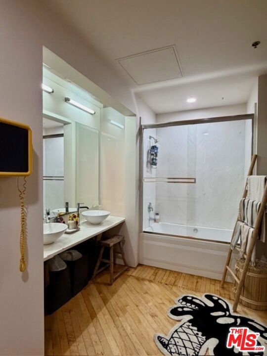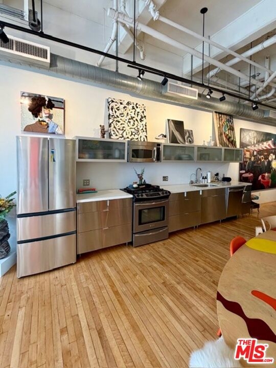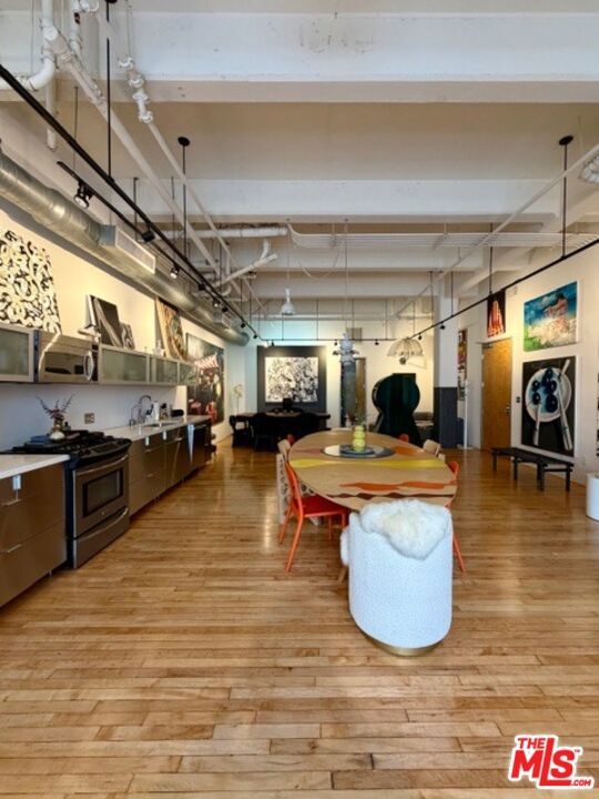 Historic-Cultural Monument no. 888, Built in 1925 by Eckel and Aldrich, Architects in the Beaux-Arts style. Dramatic designer space with very rare roll up exterior door in the highly sought after Biscuit Company Lofts. Encompassing over 1,100 square feet in the DTLA Arts District, Unit 110 marries the drama of its industrial past with chic modern finishes and amenities. The space offers voluminous concrete high ceilings, exposed brick wall, hardwood floors throughout, stainless steel kitchen and marble elements in the bathroom. Enjoy substantial property tax breaks due to Mills Act designation. Blocks from SoHo House, Maru Coffee, Bavel, Bestia, The Good Liver, Everson Royce Bar and an endless roster of the cities best restaurants, coffee shops, boutiques and nightlife. The building offers a sun drenched pool and outdoor lounge area, fitness room, front desk and concierge. One deeded parking space included in sale.