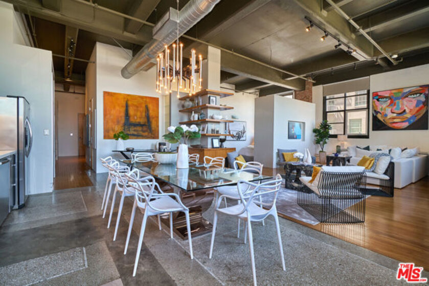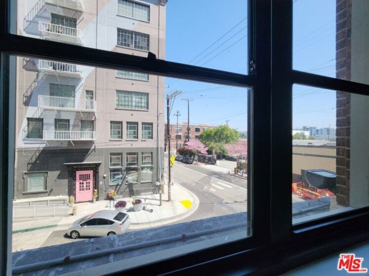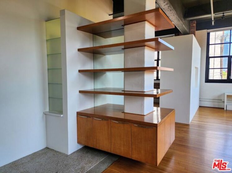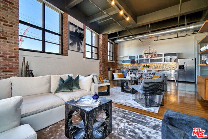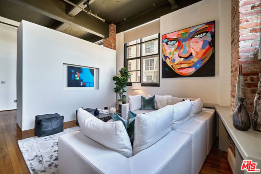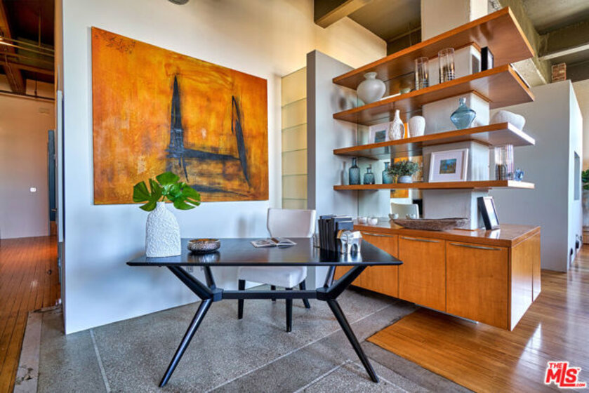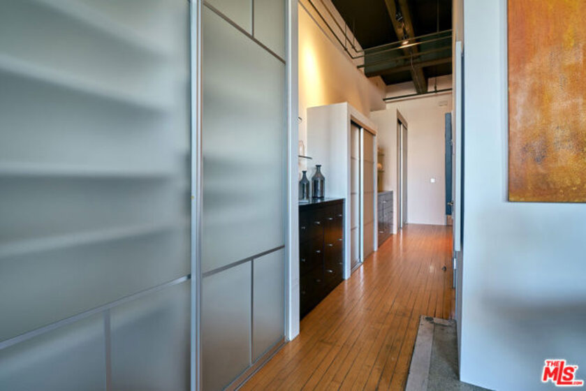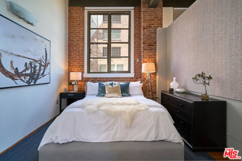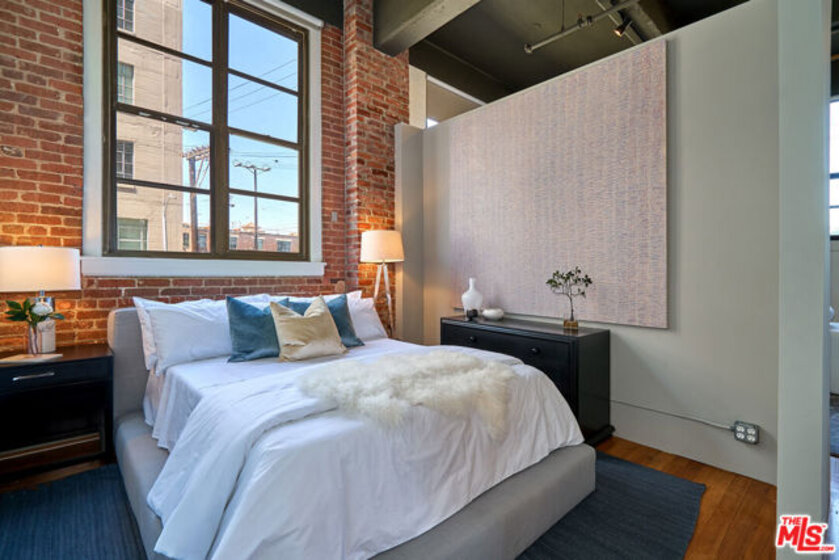 (Unit is unfurnished - photos for reference only) Experience the best of Arts District living in this stunning CORNER Biscuit Loft on the 2nd floor of the neighborhood's premier historic building with a MASSIVE property tax reduction through MILLS ACT. A thoughtfully designed entry hall, complete with custom closets and a stylish half-bath, welcomes you into an expansive open loft with soaring ceilings and elevated windows that bathe the space in natural light, all while maintaining privacy from the street. The custom-designed kitchen is a showstopper, featuring an upgraded geometric stone backsplash, high-end fixtures, and sleek cabinetry. Original hardwood and terrazzo flooring add timeless character, blending industrial charm with modern sophistication. Custom cabinetry build-outs and separated bedroom area makes for a simplistic, yet private space within the unit, offering both openness and retreat. The spacious primary bath boasts dual sinks and a shower/tub combo for ultimate comfort. Additional highlights include solar shades, designer paint, and a coveted underground parking space. Residents enjoy exceptional amenities, including a 75-foot saline pool, outdoor Viking BBQs, a firepit, and a state-of-the-art fitness center. With 24-hour concierge service, 1 secure underground parking space w/ EV charger, and included utilities (gas, water, and trash), this is urban loft living at its finest. From award-winning restaurants like Bestia, Girl and the Goat, and Bavel to renowned creative spaces like Hauser & Wirth and The Geffen Contemporary at MOCA, the neighborhood is a dynamic blend of history and innovation.