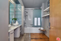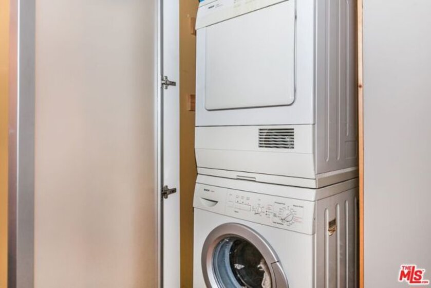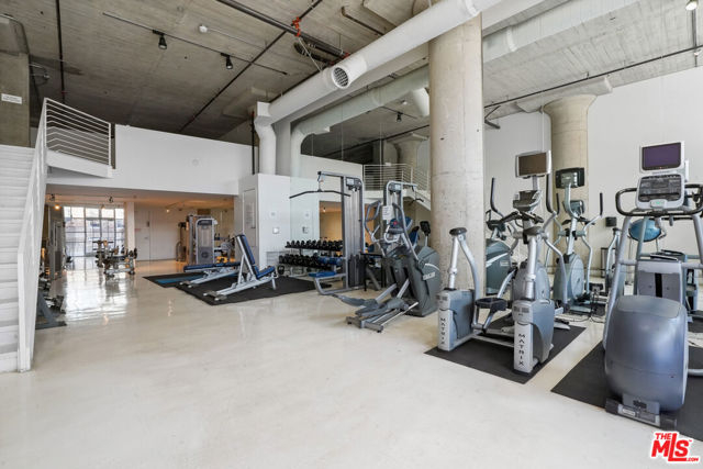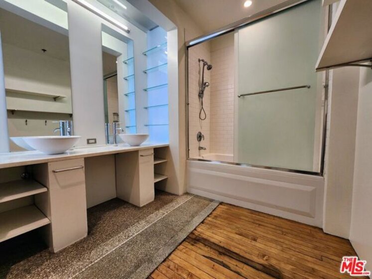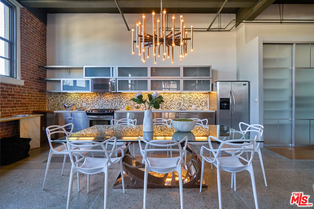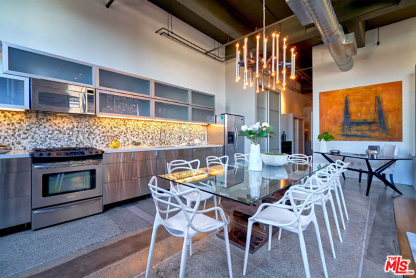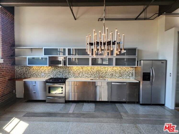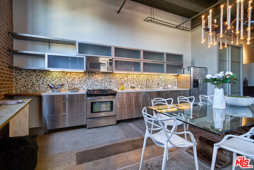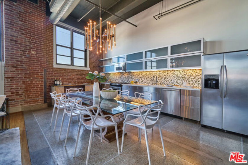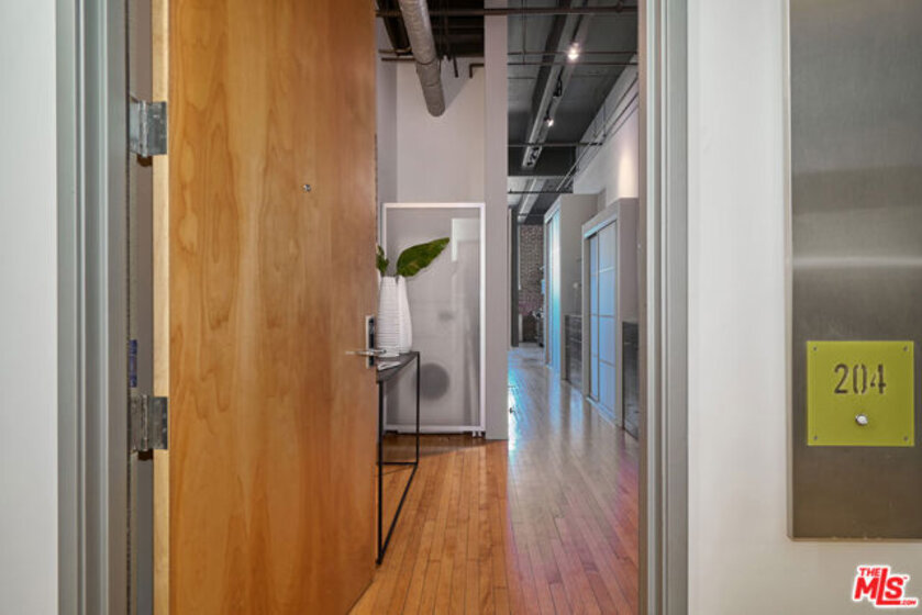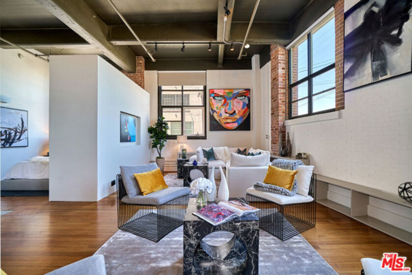(Unit is unfurnished - photos for reference only) Experience the best of Arts District living in this stunning CORNER Biscuit Loft on the 2nd floor of the neighborhood's premier historic building with a MASSIVE property tax reduction through MILLS ACT. A thoughtfully designed entry hall, complete with custom closets and a stylish half-bath, welcomes you into an expansive open loft with soaring ceilings and elevated windows that bathe the space in natural light, all while maintaining privacy from the street. The custom-designed kitchen is a showstopper, featuring an upgraded geometric stone backsplash, high-end fixtures, and sleek cabinetry. Original hardwood and terrazzo flooring add timeless character, blending industrial charm with modern sophistication. Custom cabinetry build-outs and separated bedroom area makes for a simplistic, yet private space within the unit, offering both openness and retreat. The spacious primary bath boasts dual sinks and a shower/tub combo for ultimate comfort. Additional highlights include solar shades, designer paint, and a coveted underground parking space. Residents enjoy exceptional amenities, including a 75-foot saline pool, outdoor Viking BBQs, a firepit, and a state-of-the-art fitness center. With 24-hour concierge service, 1 secure underground parking space w/ EV charger, and included utilities (gas, water, and trash), this is urban loft living at its finest. From award-winning restaurants like Bestia, Girl and the Goat, and Bavel to renowned creative spaces like Hauser & Wirth and The Geffen Contemporary at MOCA, the neighborhood is a dynamic blend of history and innovation.
