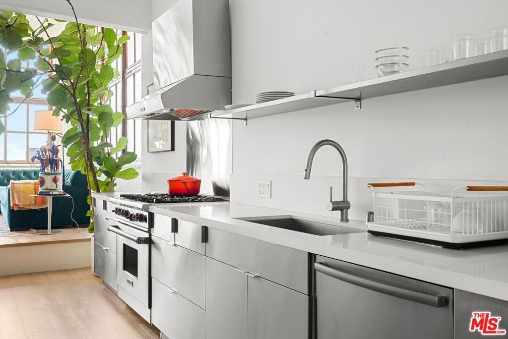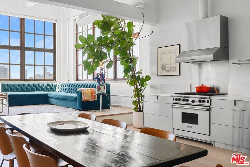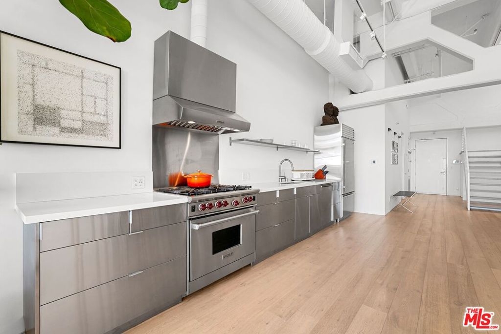 Located in the heart of DTLA's vibrant Arts District is this designer 2-story architectural penthouse at the Biscuit Company Lofts. Just moments away from the best dining, coffee spots, and Soho Warehouse, this home offers both luxury and convenience. No detail was overlooked in transforming this residence into one of the most exceptional in the neighborhood. Highlights include a private terrace with sweeping, sunset views of the downtown skyline, soaring high ceiling, exposed original brick walls, rich wood flooring, and a sleek stainless steel kitchen. The primary suite is an oasis with a spa-like bathroom, plentiful closet space, and direct access to the private exterior patio. The Biscuit Company Lofts is regarded as one of the premier buildings in the Arts District, offering 24-hour controlled access, security, and concierge services. The building amenities include a resort-style swimming pool, outdoor lounge area with a fire pit and BBQ, dog walk, a two-level gym, and two dedicated parking spaces. As a Mills-Act approved building, each homeowner benefits from significant property tax savings. This is a truly unique opportunity.