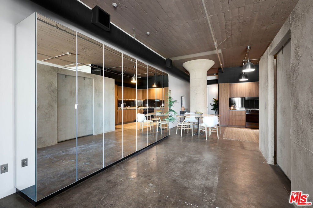 Wake up every morning to breathtaking skyline panoramas and sophisticated interiors thoughtfully crafted by internationally celebrated designer Jose Carrasco-Lama. With a dramatically reduced price, this Arts District loft honors the aesthetics and elements of the original Toy Factory building and reinterprets them into a fresh and dynamic live/work home. The textures and coloring of the iconic Toy Factory support pillars are echoed in the newly-constructed private bedroom retreat. The sun-drenched living room takes advantage of the original east-facing factory windows that overlook the architectural landmark of the new Sixth Street Bridge. The remodeled kitchen has new paneled appliances and emphasizes the warmth and sophistication found throughout the loft. The generous bathroom showcases Carrasco-Lama's one-of-a-kind custom paint design that completes this unique living environment which is sophisticated and elevated yet livable and unpretentious. The Toy Factory Lofts enjoy the best amenities of any of DTLA and Metro LA's complexes including a roof-top pool and pavilion, a mid-building outdoor garden with panoramic views of LA's skyline, generous dining areas, and community barbecues. On the ground level, a fully-appointed gym is set within a space that highlights the building's early 20th-Century architecture. Secured underground parking with its own dedicated EV charging station, 24-hour security, and a 24-hour concierge elevate this building to an unparalleled living experience. The Toy Factory Lofts are steeped in history - and your personal entry into its history is about to be written. Located amidst the vibrancy of the Arts District, the building is steps from some of the most innovative and award-winning restaurants including Cameila, Bestia, Bavel, Factory Kitchen, and many more. Hank's Grocery lies just outside your front door, as does SoHo House, Warner Music, The Bike Shed Moto Co, Hauser & Wirth Gallery, and so much more.