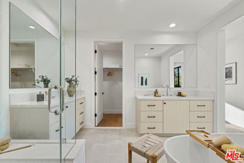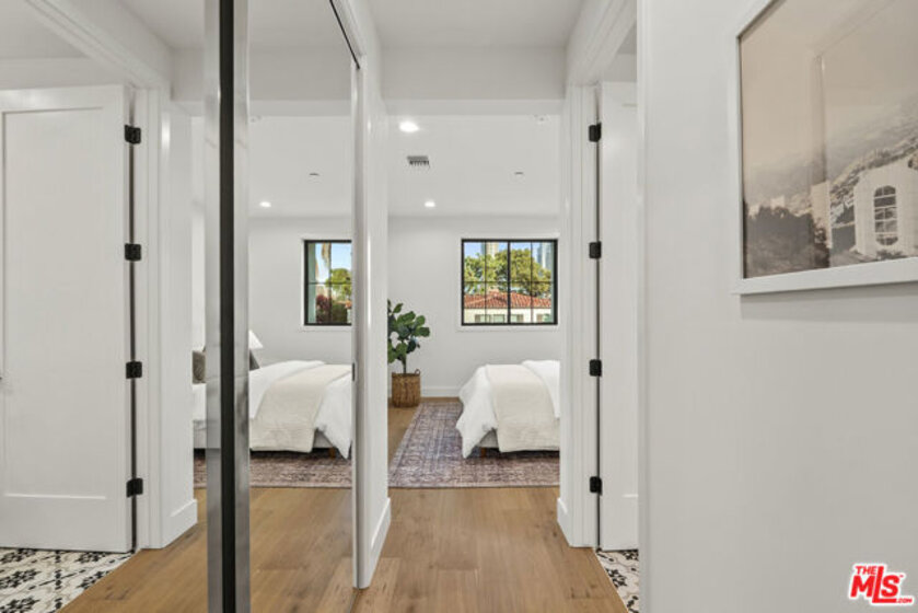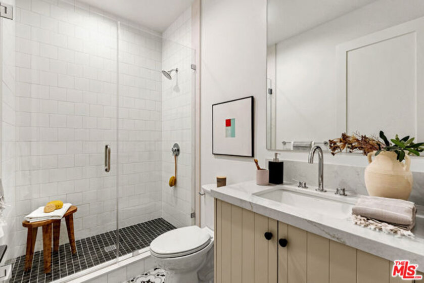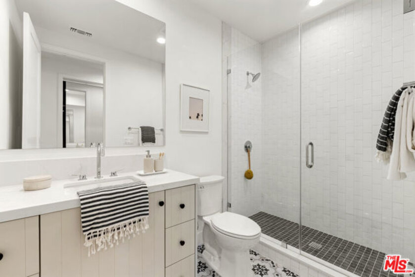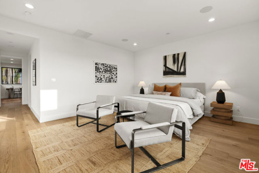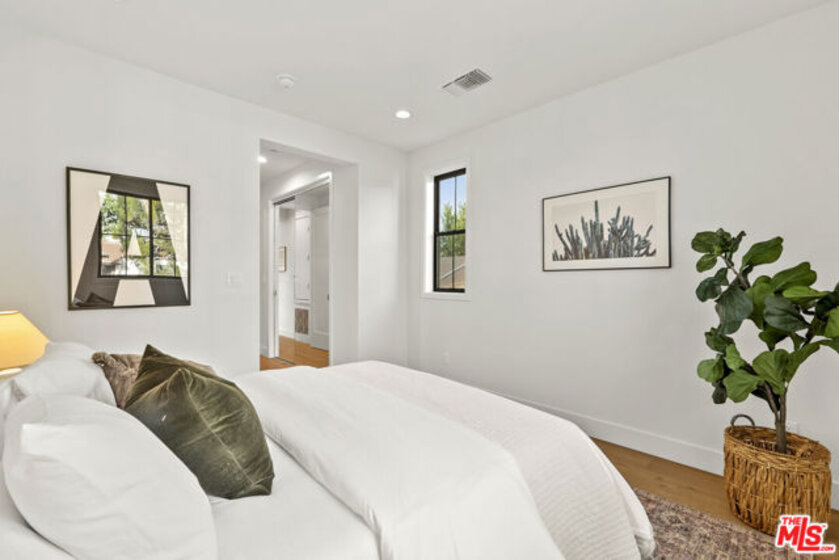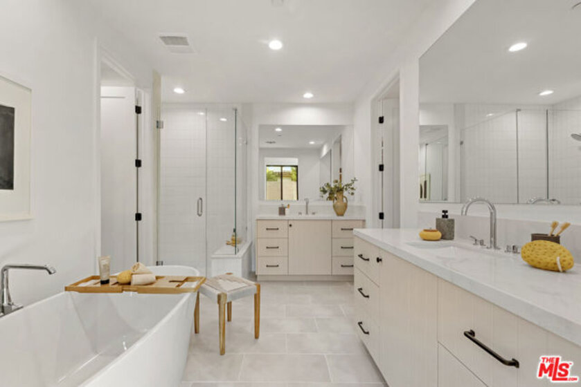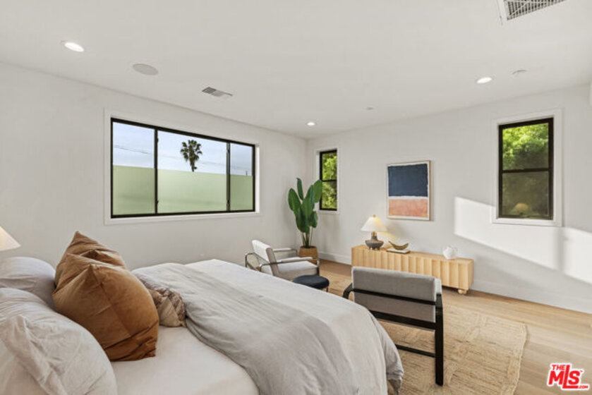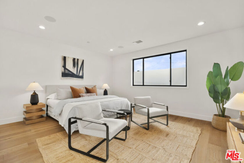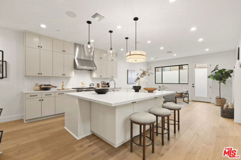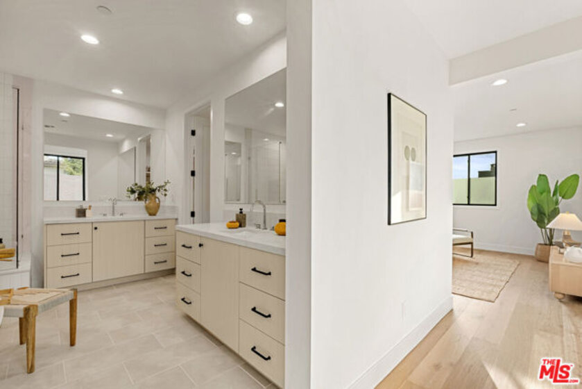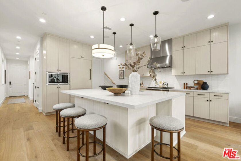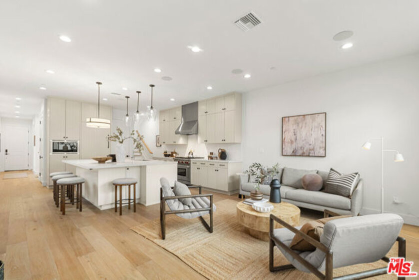 Welcome to Villa Benecia, Spanish for "the blessed one." This stunning, brand-new 2026 Thomas James Homes (a national leader in high-quality residences) modern Spanish-style townhouse condominiums built with quality craftsmanship, never lived in, features an elevator, attached garage, and an exceptional location in the highly sought-after Century Glen neighborhood. Ideally located just west of Westfield Century City and east of Beverly Glen, the home is blocks to fine dining, shopping, fitness centers, and more. Positioned on a hilltop, the residence offers beautiful views of the Century City skyline. Enter from the attached garage or through the formal covered front door into a dramatic entry hallway with high ceilings and warm hardwood floors. The main level features an open-concept dream kitchen with Wolf and Sub Zero appliances, a large center island seating up to six, a spacious living room with gas fireplace, and a generous balcony overlooking the private yard below. This level also includes a powder room and elevator access to all three floors. The top floor offers a luxurious primary suite and a guest bedroom, both with en-suite bathrooms, along with a laundry room and a flexible landing area ideal for a desk or seating nook with Century City views. The primary suite boasts abundant natural light, views of the Wilshire Corridor skyline, a walk-in closet, and a spa-like bathroom with expansive vanities, a large shower, and a freestanding soaking tub. The guest bedroom features ample closet space, a well-appointed en-suite bath, and stunning skyline views. The lower level, adjacent to the private backyard, provides an expansive open space ideal for a second guest suite, screening room, or entertainment area, complete with an en-suite bathroom. Rare offering with New Solar Panels on Roof. One of only two units available.