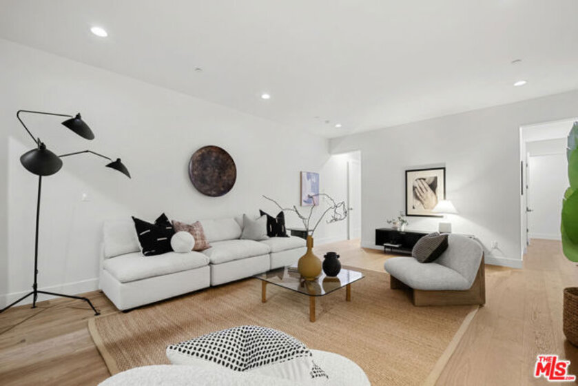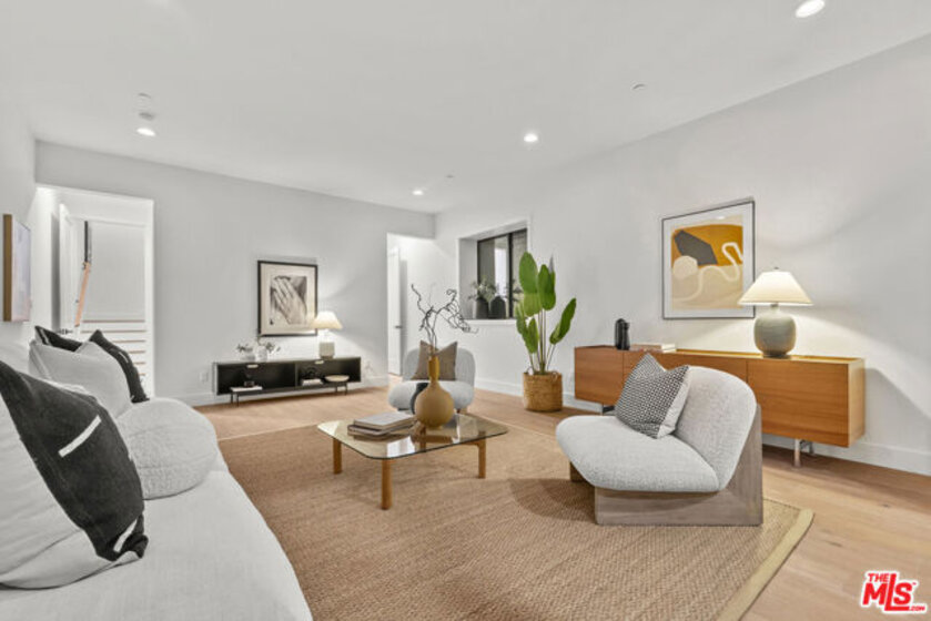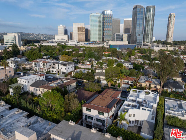 Welcome to Villa Benecia, Spanish for "the blessed one." This stunning, brand-new 2026 Thomas James Homes (a national leader in high-quality residences) modern Spanish-style townhouse condominium built with quality craftsmanship, never lived in, features an elevator, attached garage, and an exceptional location in the highly sought-after Century Glen neighborhood. Ideally located just west of Westfield Century City and east of Beverly Glen, the home is blocks to fine dining, shopping, fitness centers, and more. Positioned on a hilltop, the residence offers beautiful views of the Century City skyline. Enter from the attached garage or through the formal covered front door into a dramatic entry hallway with high ceilings and warm hardwood floors. The main level features an open-concept dream kitchen with Wolf and Sub Zero appliances, a large center island seating up to six, a spacious living room with gas fireplace, and a generous balcony overlooking the private yard below. This level also includes a powder room and elevator access to all three floors. The top floor offers a luxurious primary suite and a guest bedroom, both with en-suite bathrooms, along with a laundry room and a flexible landing area ideal for a desk or seating nook with Century City views. The primary suite boasts abundant natural light, views of the Wilshire Corridor skyline, a walk-in closet, and a spa-like bathroom with expansive vanities, a large shower, and a freestanding soaking tub. The guest bedroom features ample closet space, a well-appointed en-suite bath, and stunning skyline views. The lower level, adjacent to the private backyard, provides an expansive open space ideal for a second guest suite, screening room, or entertainment area, complete with an en-suite bathroom. Rare offering with New Solar Panels on Roof. One of only two units available.