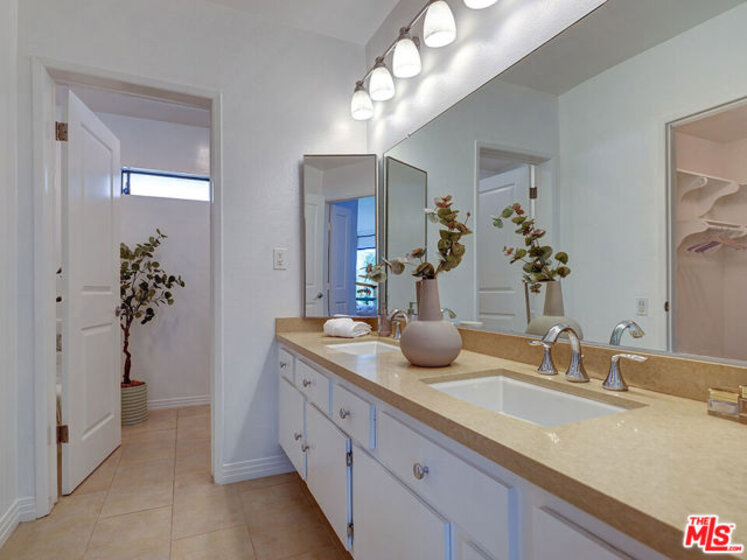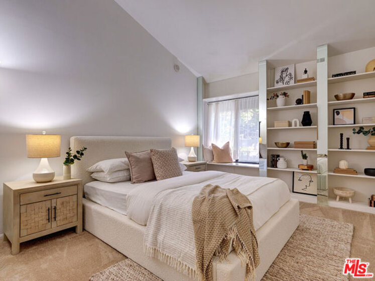 Welcome to sophisticated penthouse living in prime Westwood/Century City, where dramatic vaulted ceilings and expansive windows create a sun-drenched sanctuary with serene treetop views from your private balcony. This tastefully updated residence features a well-appointed kitchen with stainless steel appliances including rich oak cabinetry, sleek Caesarstone quartz countertops, and mosaic tile backsplash, plus a convenient laundry alcove with full-size front-loading washer and dryer. The open living and dining areas flow seamlessly around a cozy fireplace, perfect for both relaxed evenings and lively entertaining. The guest suite offers custom built-in shelving and large closets, with an adjacent updated bathroom featuring classic subway tile and modern fixtures. Your primary retreat boasts soaring ceilings, abundant natural light, an expansive walk-in closet, and a spa-like bathroom complete with dual-sink vanity, designer-tiled shower, and a separate soaking tub. Building amenities include a sparkling pool, spa, and top-floor sun deck. HOA dues include earthquake insurance, basic cable and broadband internet. Unit includes two tandem subterranean parking spaces and additional storage. With proximity to UCLA and Century City dining and shopping, easy freeway access, and zoning for highly-rated Westwood Charter Elementary, this turnkey home is the perfect blend of style, comfort, and luxury in one of LA's most desirable neighborhoods.