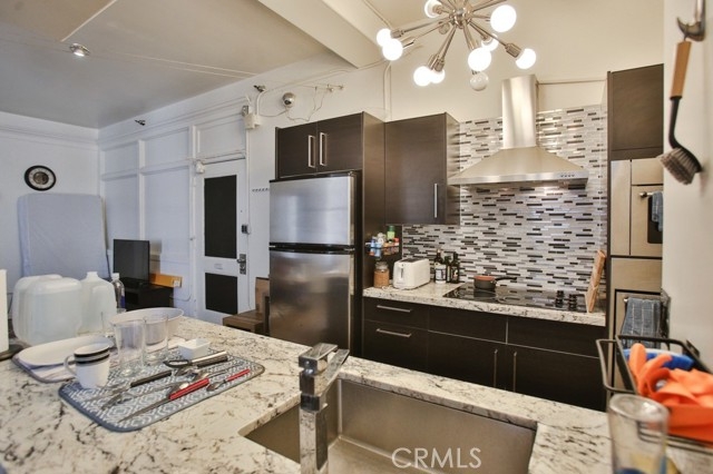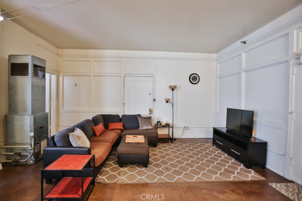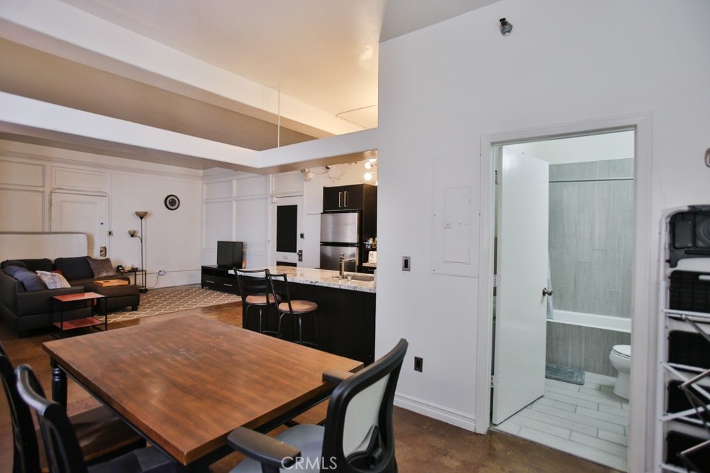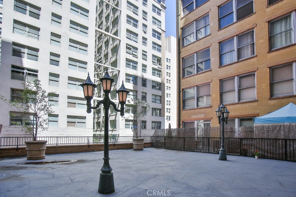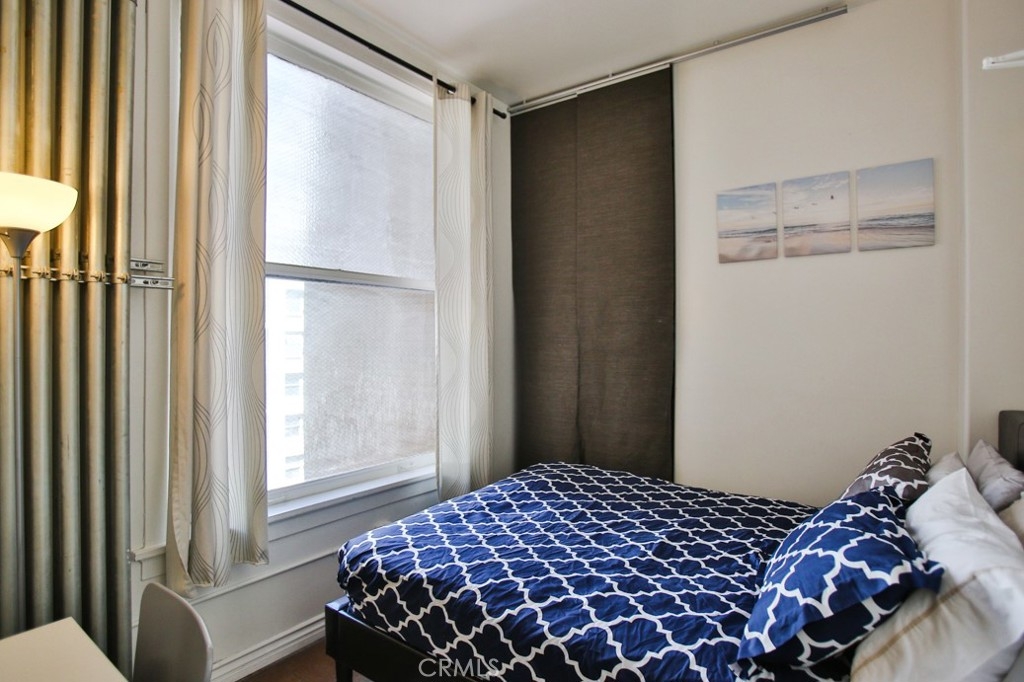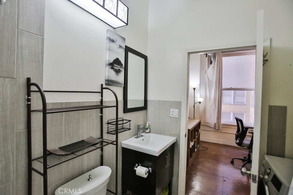Welcome to Unit 803 at 215 W 7th Street, a stunning loft-style residence in the iconic Bartlett Building located in the heart of Downtown Los Angeles’ Historic Core. Originally built in 1911 and later converted into residential lofts, the building offers a unique blend of Beaux-Arts architecture and contemporary design. This beautifully remodeled 1-bedroom, 1-bathroom unit spans 707 square feet and features soaring 10-foot ceilings, oversized double-hung windows that flood the space with natural light, and polished concrete floors that enhance the home's industrial character. The fully enclosed bedroom offers privacy rarely found in downtown lofts, while a flexible den area makes a perfect space for a dining nook or home office. The open-concept kitchen is outfitted with granite countertops, stainless steel appliances, and abundant cabinet space, flowing seamlessly into the living area for easy entertaining. The spa-inspired bathroom includes sleek tile work, modern fixtures, and a deep soaking tub for a relaxing retreat. Additional conveniences include an in-unit washer and dryer and ample closet space throughout. The Bartlett Building is Mills Act-approved, offering significant property tax savings—up to 70%—for eligible owners. Residents also enjoy a host of amenities including 24-hour concierge and security, a rooftop sundeck with sweeping 360-degree city views, and optional on-site parking. Located in the bustling Jewelry District, you're just steps away from the Apple Store, Whole Foods, the Ace Hotel, the Orpheum Theatre, and some of the city's best restaurants and nightlife. Unit 803 is a rare opportunity to own a piece of LA history while enjoying all the modern comforts of urban living.