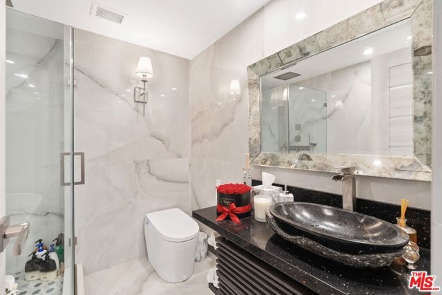 VIEWS for days from this beautiful Penthouse unit in the most desirable stack of one of the premiere, full-service buildings in the heart of Century City. Luxury 1 bedroom remodeled condo in stunning Century City. Totally renovated with spectacular 180-degree unobstructed views of Los Angeles and Beverly Hills, from the ocean to the Hollywood sign. Cucinesse Srl Italian cabinetry, Italian tile floors, Miele appliances, Cristallo quartzite countertops, designer wall coverings, wine storage, fire place, central heating, and air conditioning. Amenities include 24-hour valet and guest parking, doorman, houseman, switchboard, large security staff, state-of-the-art fitness center, business center, saunas, huge, heated pool and sun deck, tennis court, private pet play-land, electric car charging stations, valet dry cleaning, vehicle washing, acres of flower gardens and grassy lawns. The hallways in the building have been recently remodeled. 1 block to the new light rail subway station and Westfield Regional Mall, markets, movies, dining, golfing, city park, 4 blocks to Rodeo Drive, 20 minutes to LAX, downtown LA, and Cedars Sinai Medical Center. 10 minutes to UCLA, Beverly Hills, Westwood, Santa Monica Bay, Bel Air, and Brentwood. With its prime location and luxurious offerings, this property represents the height of city living in Los Angeles.