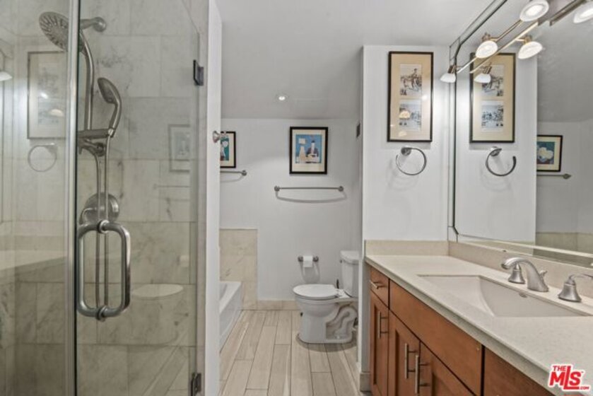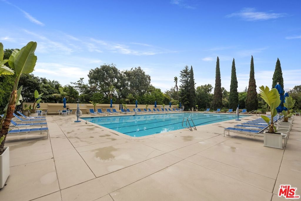 Located in one of Century City's most desirable buildings, this spacious 1 bed 1 bath ground floor unit offers an ideal combination of convenience, privacy, and outdoor space rarely found in condominiums in Los Angeles. The open concept living room and kitchen are designed for indoor outdoor living with floor to ceiling windows that open up to one of the largest private patios in the building. Tucked away on a tranquil interior garden, the patio's position makes it the ideal retreat just a short distance from Century City shops and restaurants. The primary bedroom features large floor to ceiling windows that overlook mature trees and landscaping, continuing a sense of serenity and privacy throughout the unit. Bathroom includes separate shower and tub. Chef's kitchen is ideal for entertaining with built in bar, modern appliances, and ample cabinet space. Natural light is abundant throughout the unit and the open concept design makes for effortless condo living. Amenities include resort style pool lined by cypress trees, full gym, private dog park, tennis court, valet parking, 24/7 security staff, manicured gardens and walking paths, children's playground, storage unit, dedicated parking space. Building is very pet friendly.
