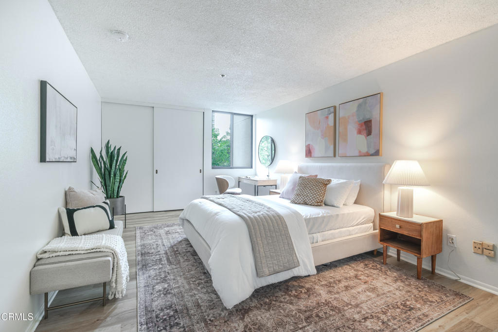 Welcome to Tokyo Villa! This spacious 2-bed, 2-bath condo is perfectly situated in the heart of downtown Los Angeles, steps from Little Tokyo, the vibrant Arts District, trendy shops, acclaimed restaurants, Dodger Stadium, and quick freeway access. Inside, the open-concept layout creates a natural flow for entertaining, with a designated dining area on one side and an oversized living room on the other. The living room features a wet bar and sliding glass doors that open to a private balcony, perfect for enjoying some fresh air. The kitchen offers ample cabinetry, stainless steel appliances, and a cozy breakfast nook for casual dining. The two bedrooms are thoughtfully positioned on opposite sides of the unit for privacy. The guest bedroom boasts dual closets and generous natural light, paired with a full hall bath that also includes a laundry closet. The primary suite features a spacious layout, ensuite bath with shower-over-tub, and extended counter space. Living at Tokyo Villa means enjoying resort-style amenities: a tranquil koi pond, indoor sauna, soothing jacuzzi, and secure underground parking with a designated two-car tandem parking spot. With its unbeatable location, great layout, and community perks, this condo offers the very best of LA city living. Don't miss the chance to make it yours!