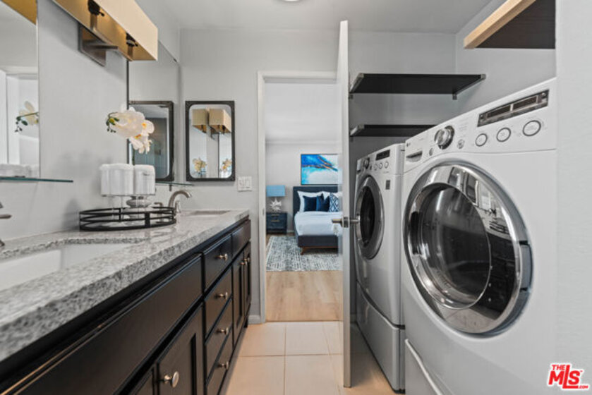 Beautifully Remodeled Top-Floor Corner Unit with Treetop Views in Prime Westwood. Welcome to this sun-drenched, top-floor corner condo offering exceptional privacy with only one shared wall and serene rear-facing treetop views. Thoughtfully and tastefully updated, this 2-bedroom, 2-bathroom home features a remodeled kitchen that seamlessly opens to a dining area and a spacious living room perfect for relaxing or entertaining. The primary suite is a true retreat with two oversized closets featuring custom built-ins, and a full-size washer and dryer conveniently located inside the unit. The private balcony offers a peaceful setting to unwind and enjoy the view. Located in a well-maintained, secured courtyard building with a sparkling pool, this home sits in the highly sought-after Westwood Charter School district. Just moments from UCLA, the metro, shopping, and dining, this inviting residence combines comfort, style, and a truly unbeatable location. A rare gem that checks all the boxes .