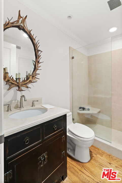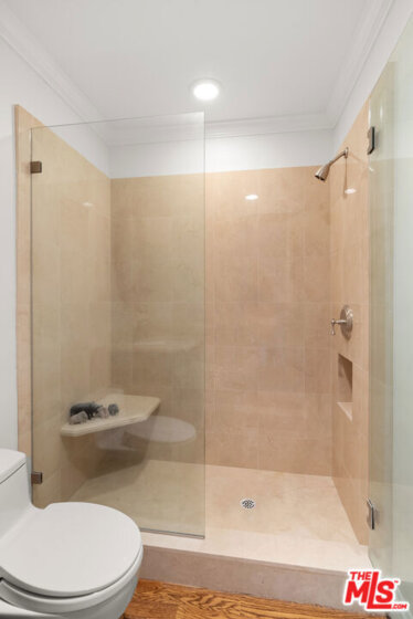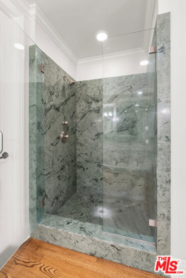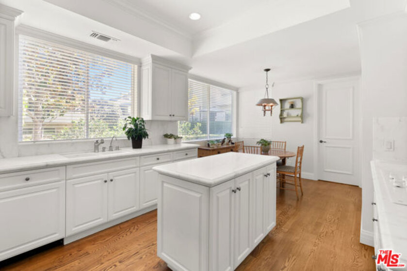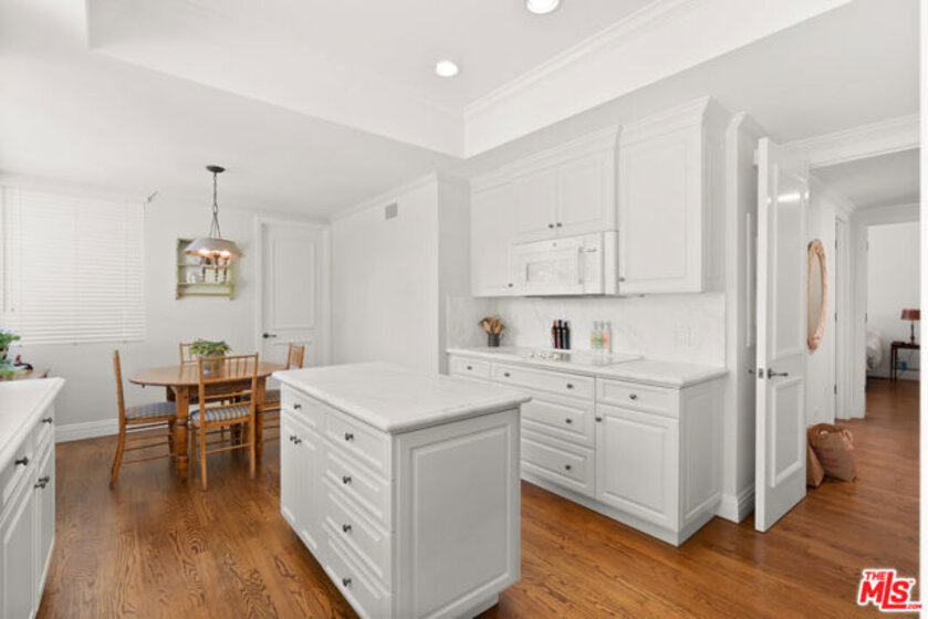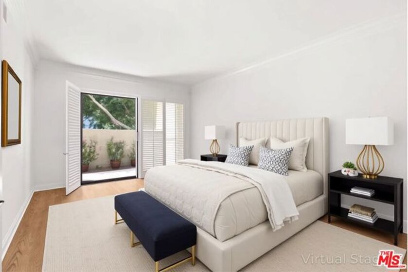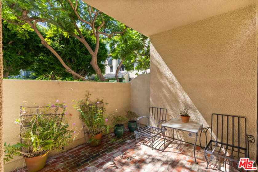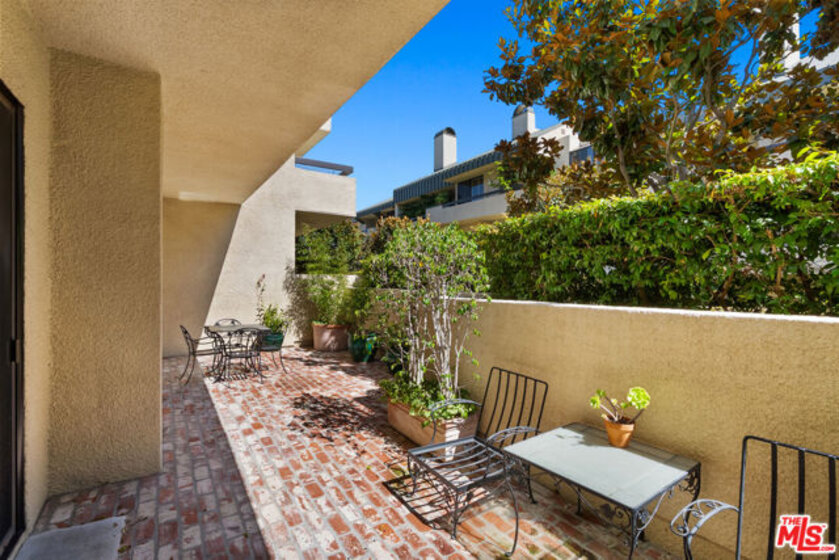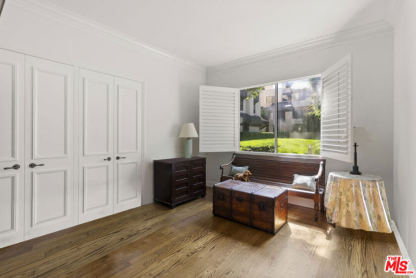 This lovely, quiet, centrally located first-floor condominium was renovated with exquisite designer detail. A spacious and open floor plan seamlessly integrates the living and dining area, and large sliding glass doors flood the space with natural light. Hardwood floors, along with beautiful crown and base moldings, custom doors, and Bouvet hardware, continue throughout the entire home. A marble surround and hearth complete the warmth of the great room fireplace. An extra deep patio running the length of the LR & DR can accommodate tables, chairs, and chaise lounges. The sunlit kitchen is complete with a center island, custom-built cabinetry, and marble countertops with bookmarked backsplashes. The kitchen has a Sub-Zero refrigerator/freezer, Kitchen Aid ovens, dishwasher, and a built-in microwave over the cooktop. A bright corner breakfast area is open to the kitchen and overlooks landscaped gardens. The primary bedroom suite has ample space for a sitting area and features a private patio with Western exposure. The primary bathroom features rare Italian marble slabs in the shower as well as the tub surround and the dual sink countertop. A light, bright second bedroom suite features high ceilings and Western exposure. The en suite bathroom has Crema Marfil marble in the shower and countertop. This rare offering is perfect for the discerning buyer. Nestled amidst lush, mature landscaping, sophistication and serenity blend seamlessly in this single-level condominium. Step into effortless indoor-outdoor living in this beautifully appointed property where comfort, style, and functionality meet. Located in a quiet and beautifully maintained enclave of Century Hill, this residence is ideal for those seeking both privacy and connection to the outdoors.t. The community of Century Hill offers an array of wonderful amenities, including 5 pools, 2 tennis courts, a fitness center, a large package room, an indoor driving tee, and on-site management, making this a lovely place to live. The guard-gated property is manned 24 hours, and the security patrol ensures peace of mind, making this one of the most secure and exclusive communities in all of Los Angeles. This coveted enclave offers an exceptional lock & leave lifestyle. Century Hill is close to the energy of the Century City shops, cafes, parks, and cultural attractions.